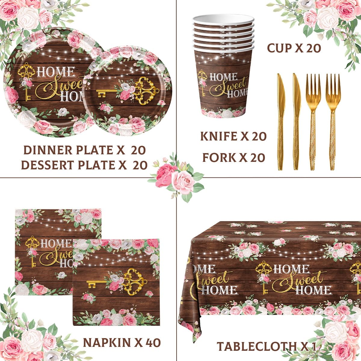 【Package】You will receive 141pcs housewarming party decorations, including 1pc housewarming tablecloth, 20pcs 9inch plates, 20pcs 7inch plate, 40pcs napkins, 20pcs 9oz cups, 20 forks and 20 knives.