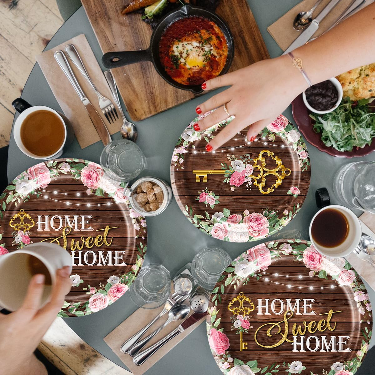 【Unique Design】Housewarming party tableware sets are printed with cute patterns such as flowers, keys, lights and the words “Home Sweet Home”. These carefully designed patterns of house warming party supply will definitely become the highlight of your exciting housewarming party!