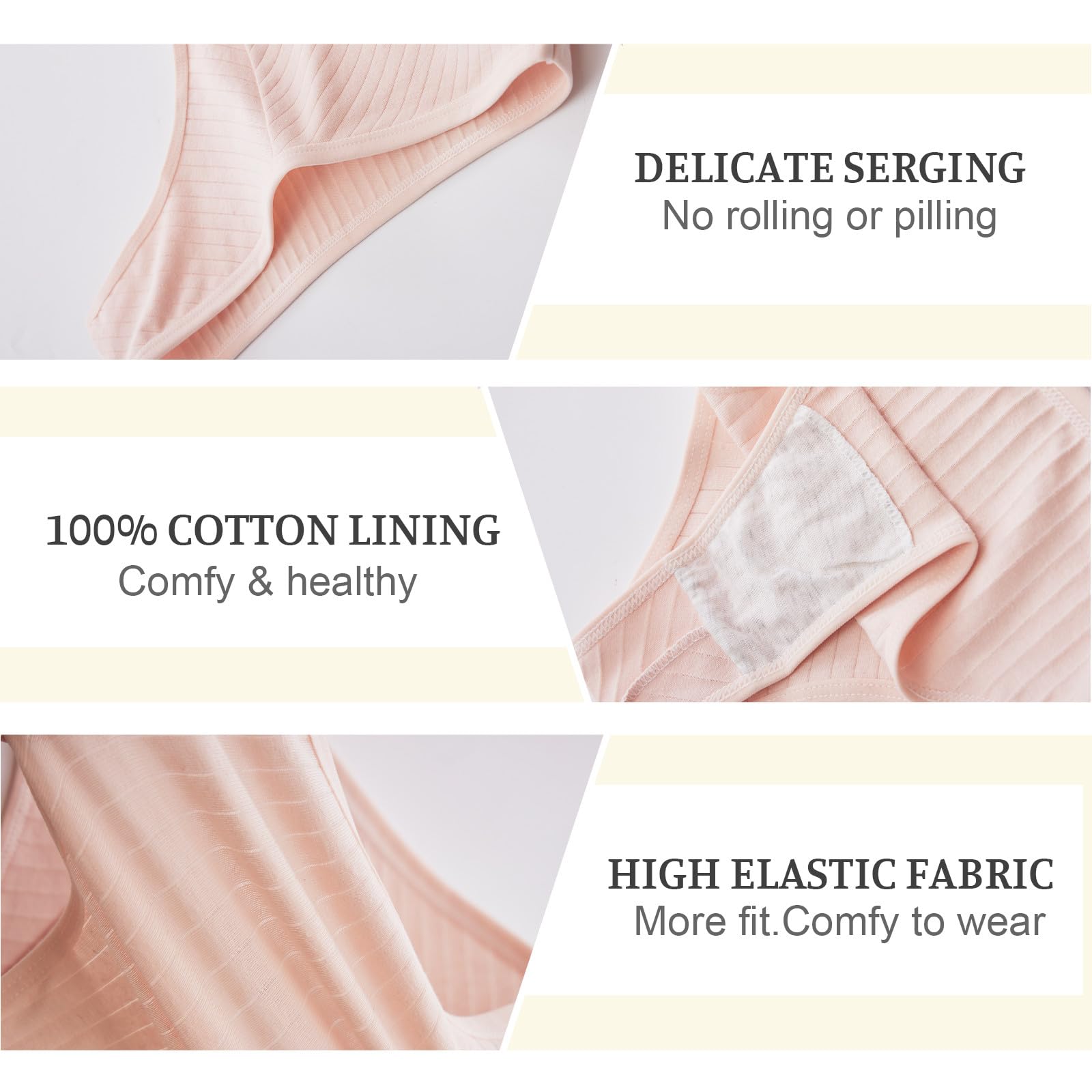 Comfort & Breathability Cotton Panties: These bikini panties are made from a premium 95% cotton and 5% elastane blend and prioritize softness and skin-friendly comfort. The breathable fabric wicks moisture, keeps you cool all day, and features a double-layer cotton crotch for enhanced hygiene and airflow. Perfect for sensitive skin!