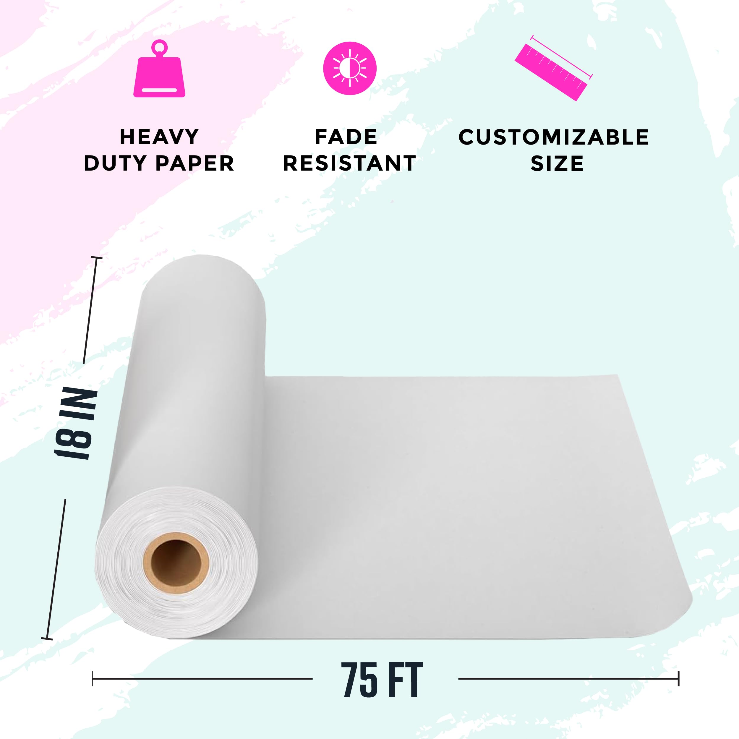 Longevity Guaranteed with Acid-Free Design; The fade-resistant art roll, white in color, ensures your art craft will maintain its vibrancy for years to come, making an excellent choice for bulletin board roll or other long-lasting applications