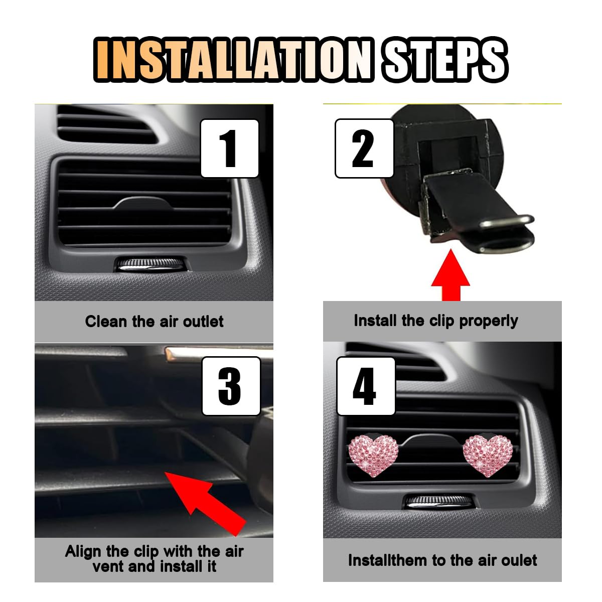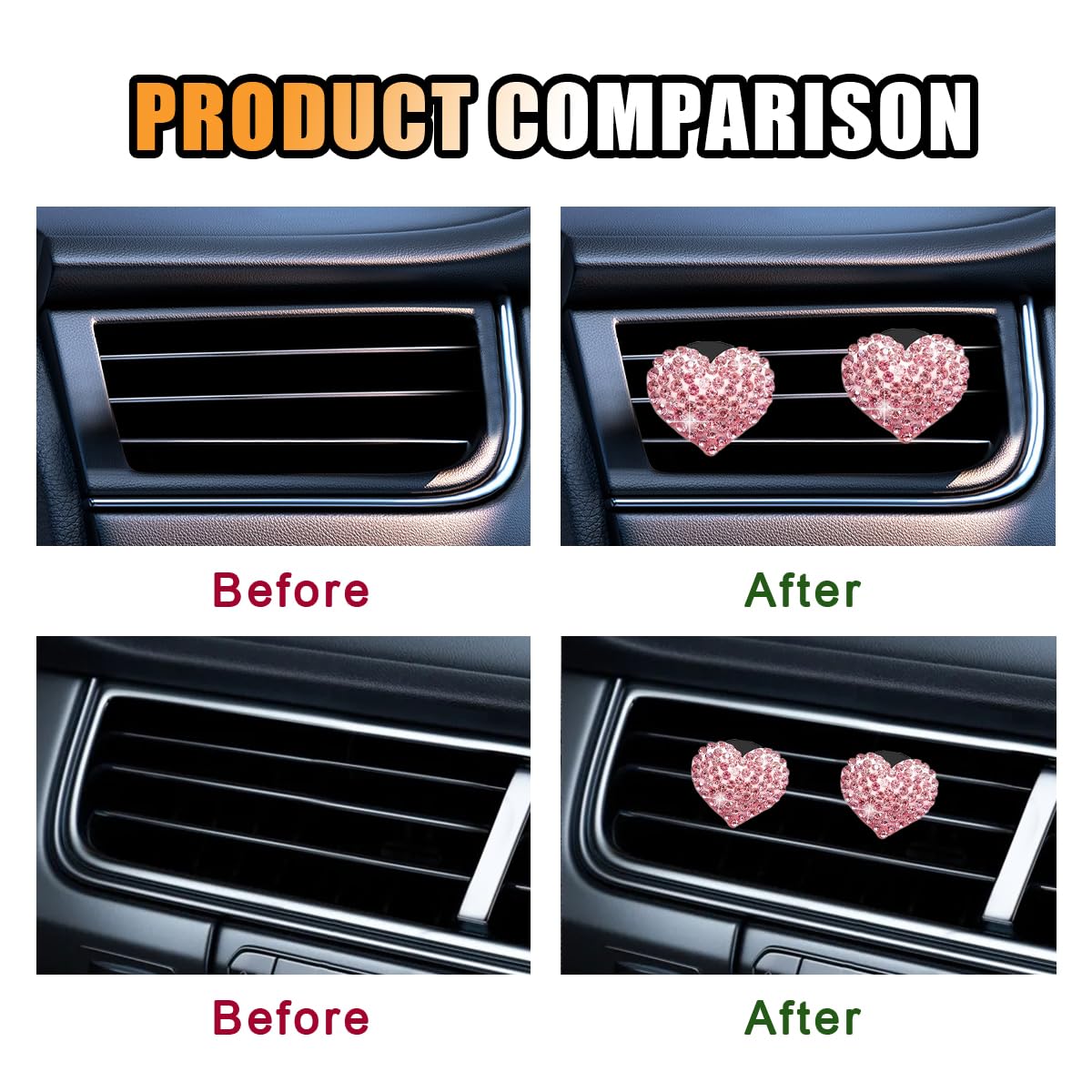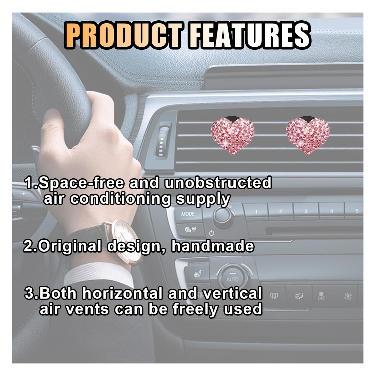 【Unique Design】:The crystal design is a sparkling and unique car accessory, Heart shape design that is cute, charming, and eye-catching. The sparkling rhinestone surface can be well decorated with your car's air conditioning vents.