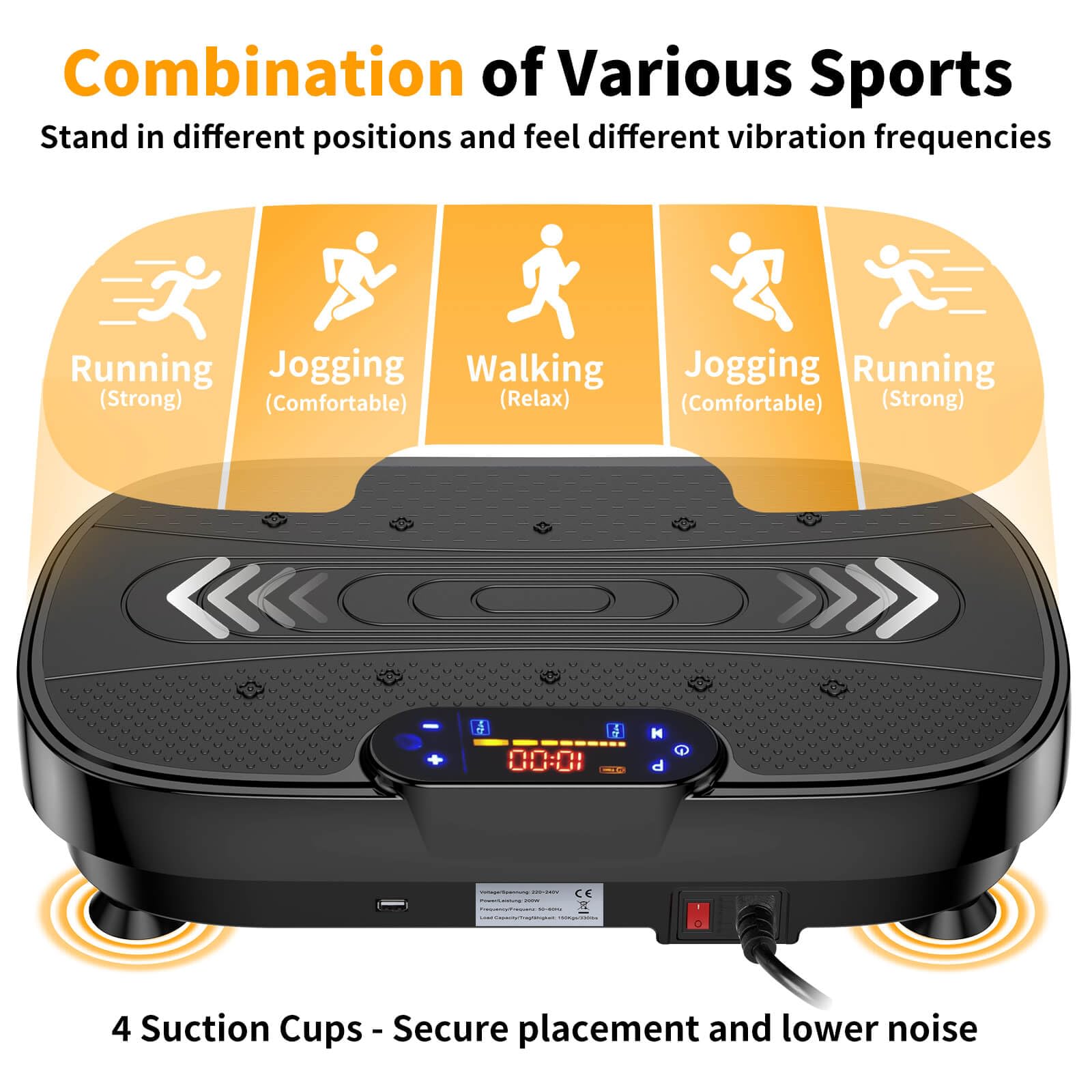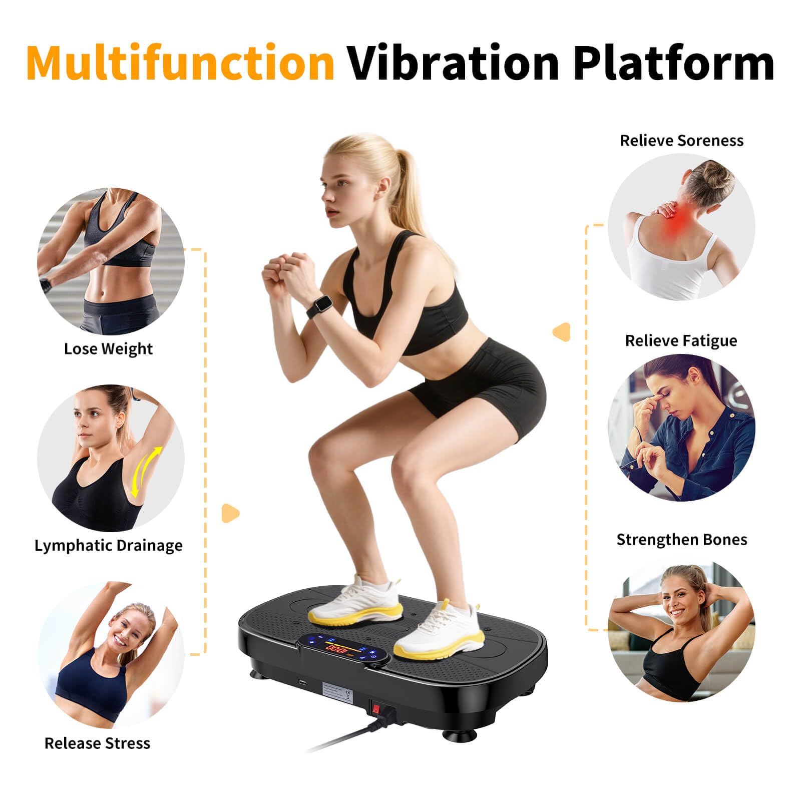 【Compact & Stable Design】 The vibration plates for weight loss features 4 suction cups for secure placement and low noise, this space-efficient vibration plate delivers powerful workouts without bulky equipment.