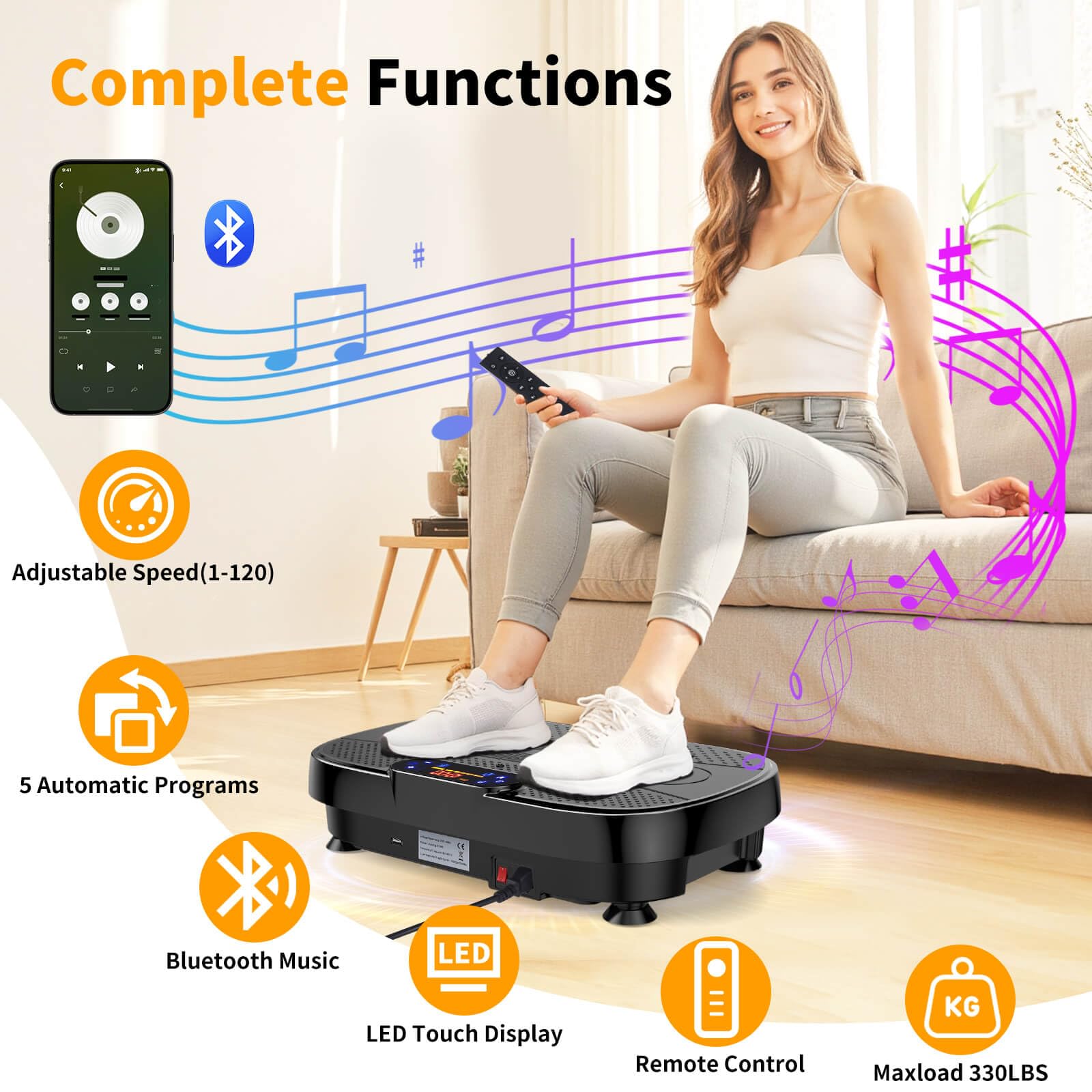 【Wireless Bluetooth Music】 Vibration plate exercise machine streams your music playlist directly through built-in Bluetooth speakers while exercising, keeping you motivated with powerful vibration training.