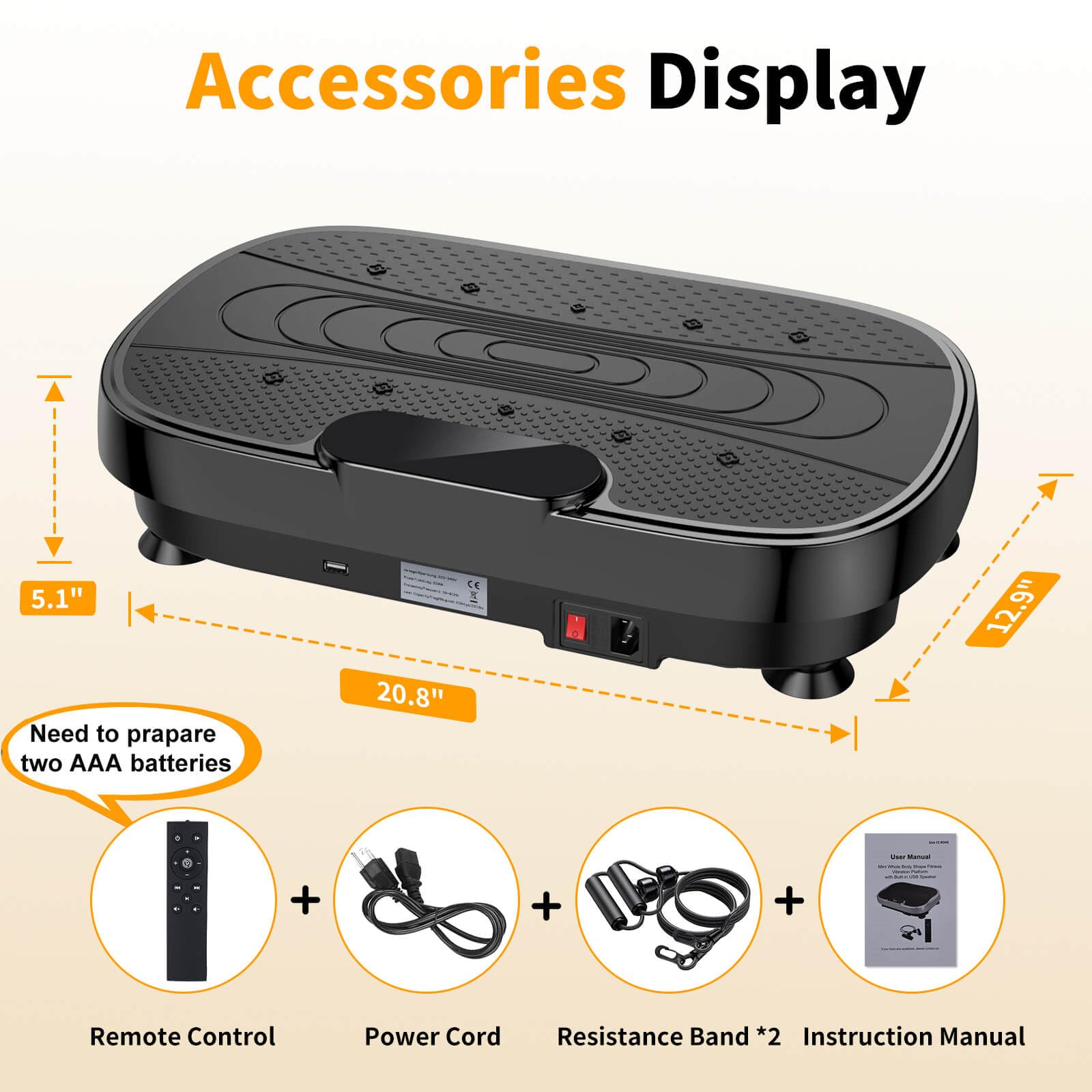 【Precise Vibration Control】 The vibration plate features 5 auto programs and 120 manual speeds precisely controlled by remote control (Need to prepare two AAA batteries), providing customized fat-burning, muscle toning and circulation-boosting.