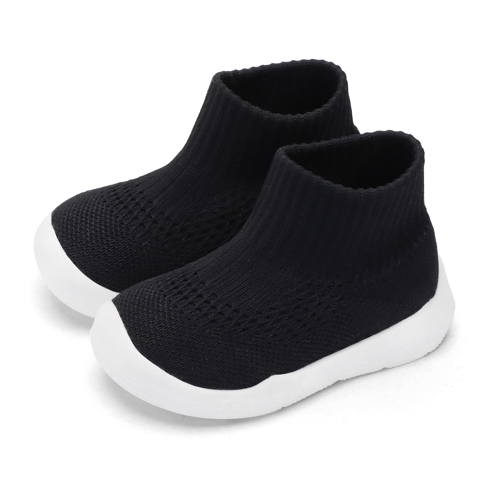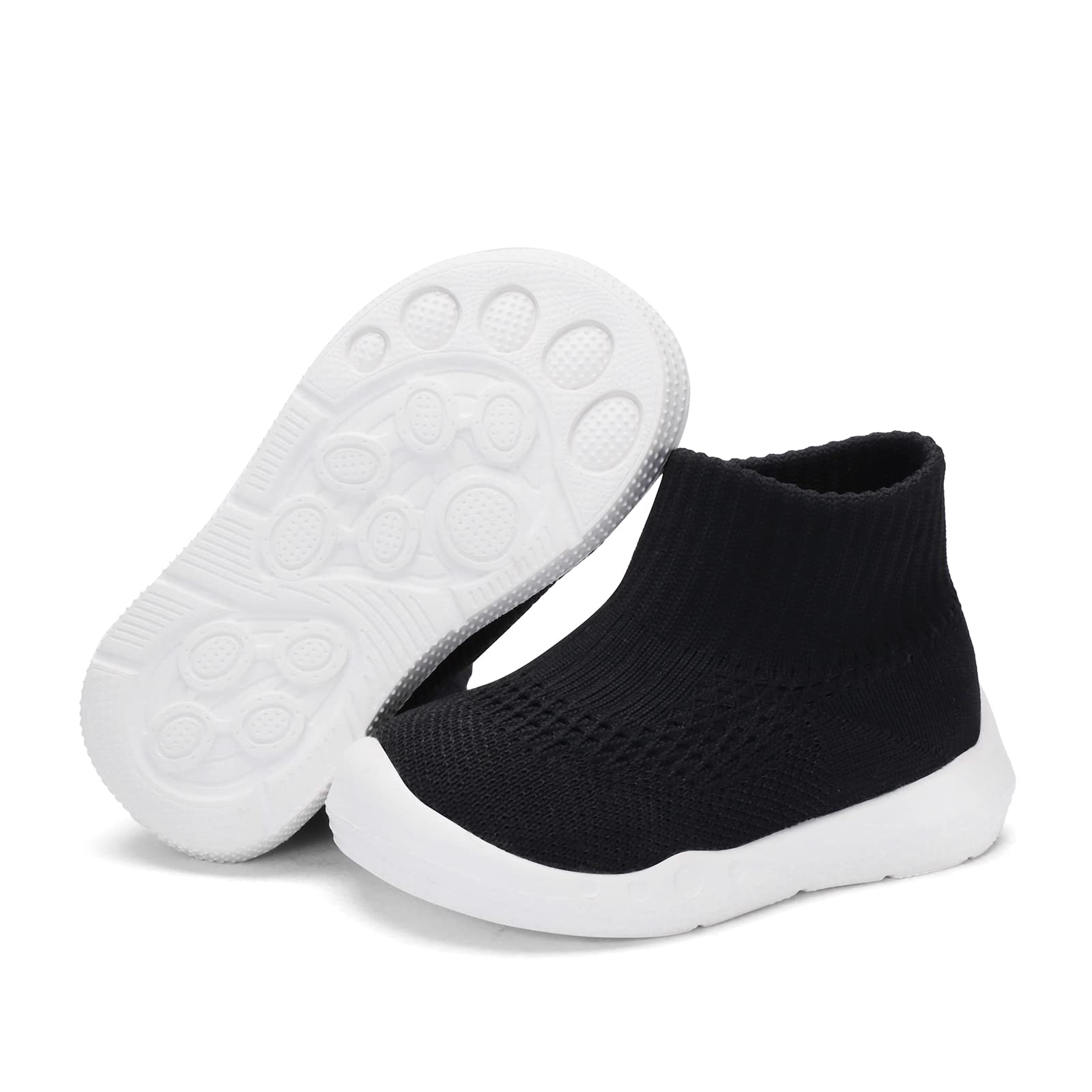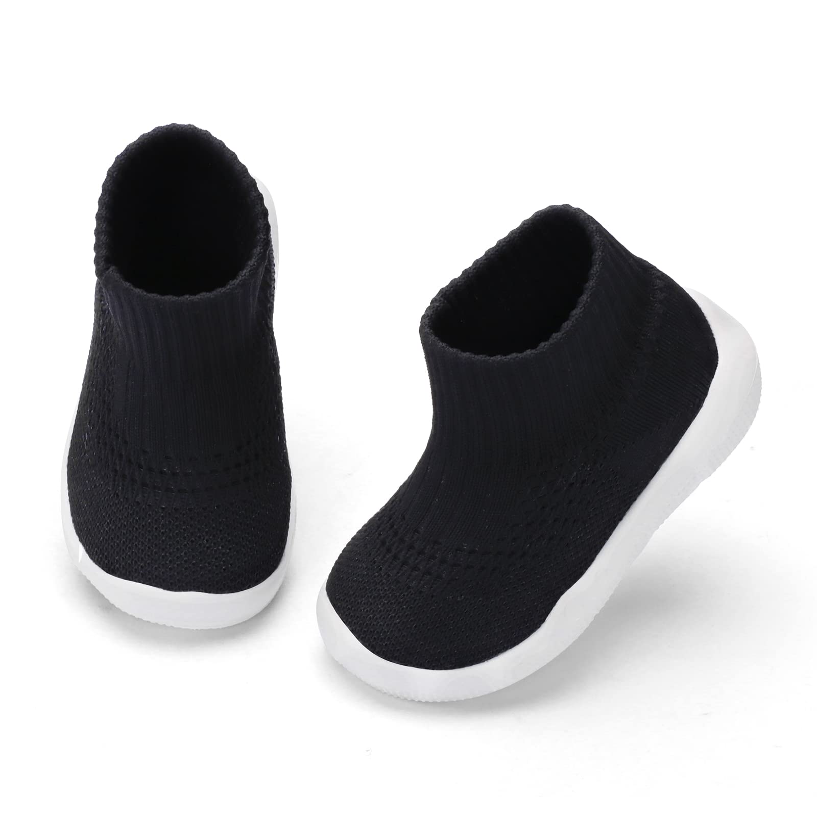 Easy Put On:Baby walking shoes The one-piece design with stretchy knit collar only takes seconds to for you to slip them on, so babies can jump right into playtime. Toddler slip on shoes let them play in comfort while enjoying their time.