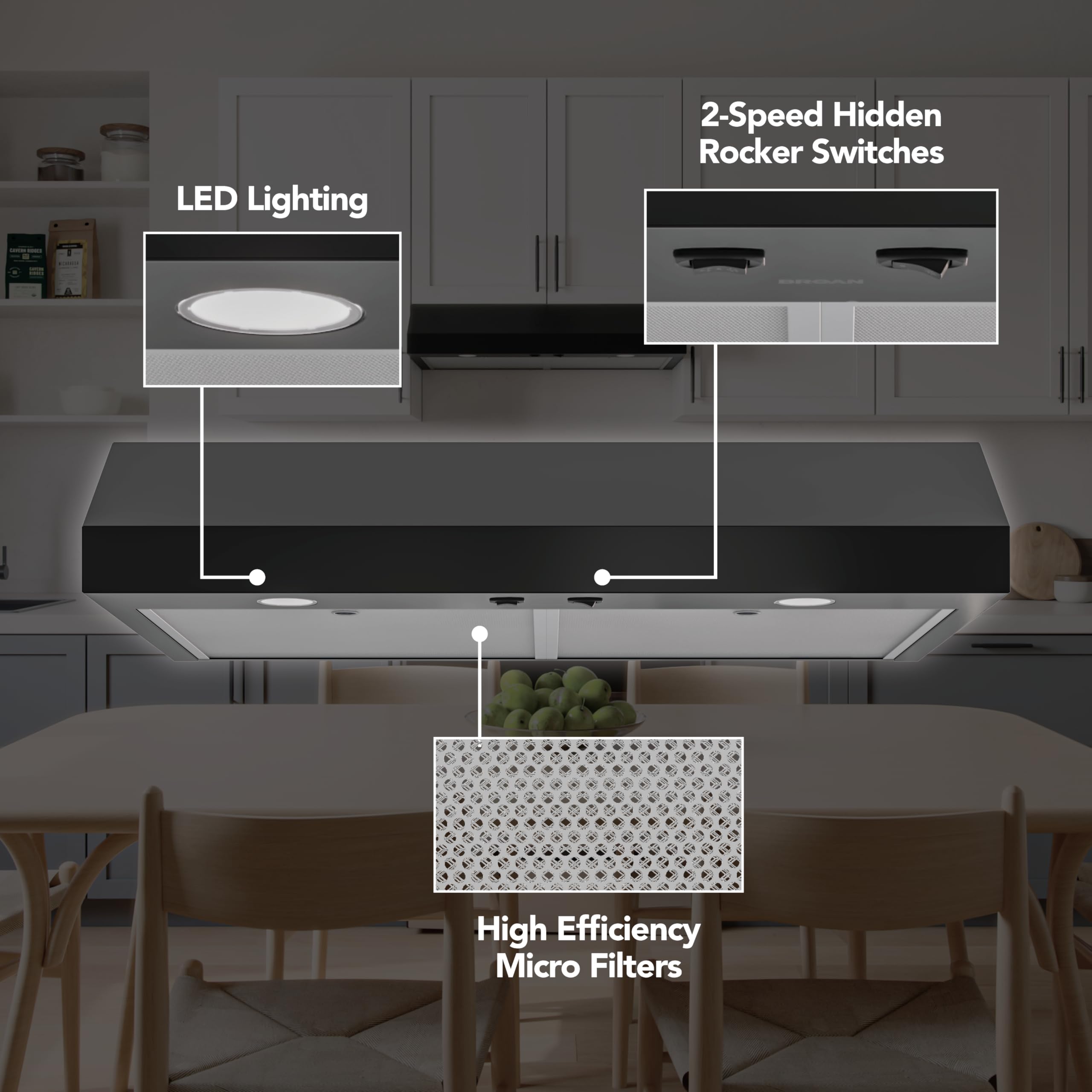 42-INCH UNDER-CABINET RANGE HOOD: 50 points of inspection. Expect a durable, long-standing ventilation solution engineered by the leader in indoor air quality to improve your kitchen air quality