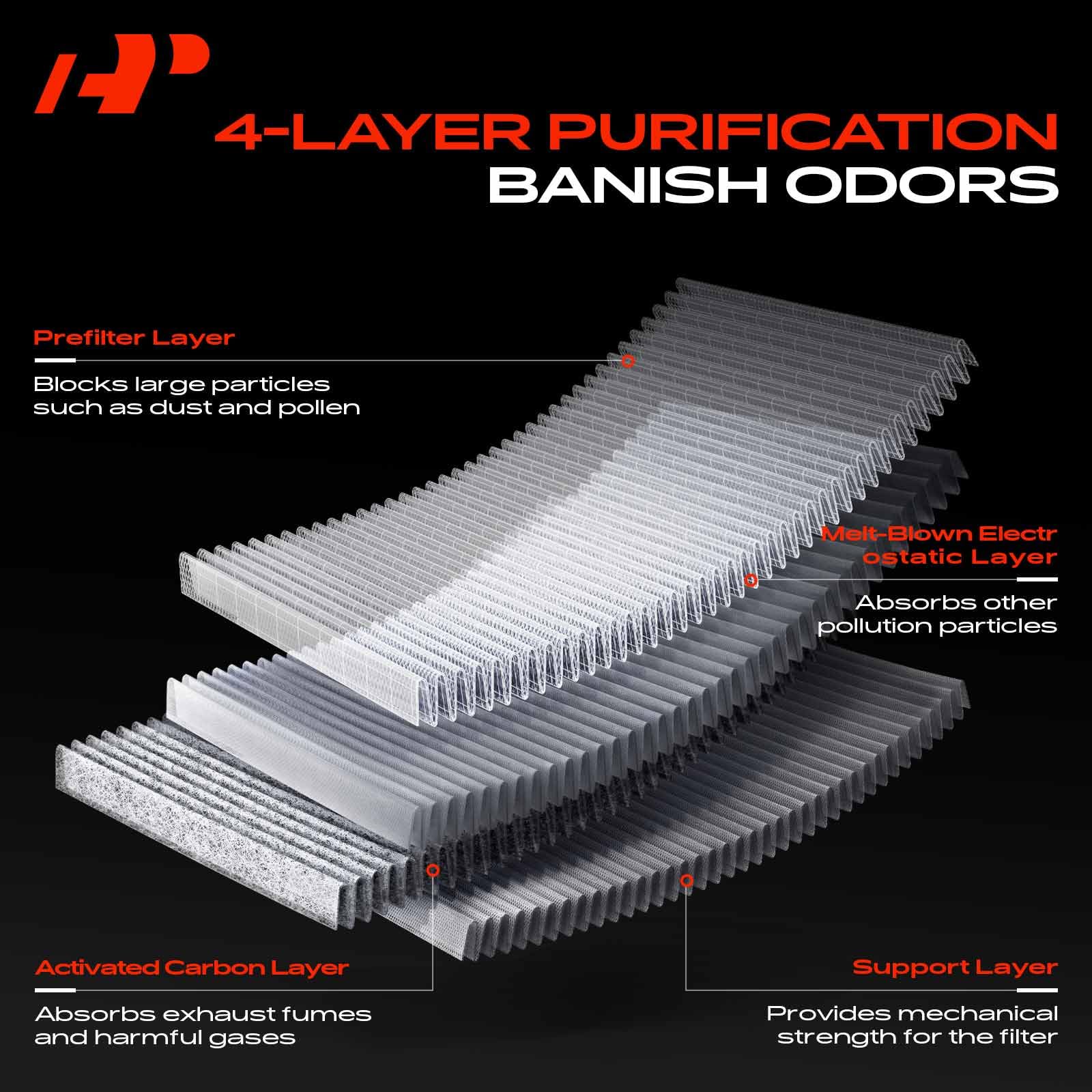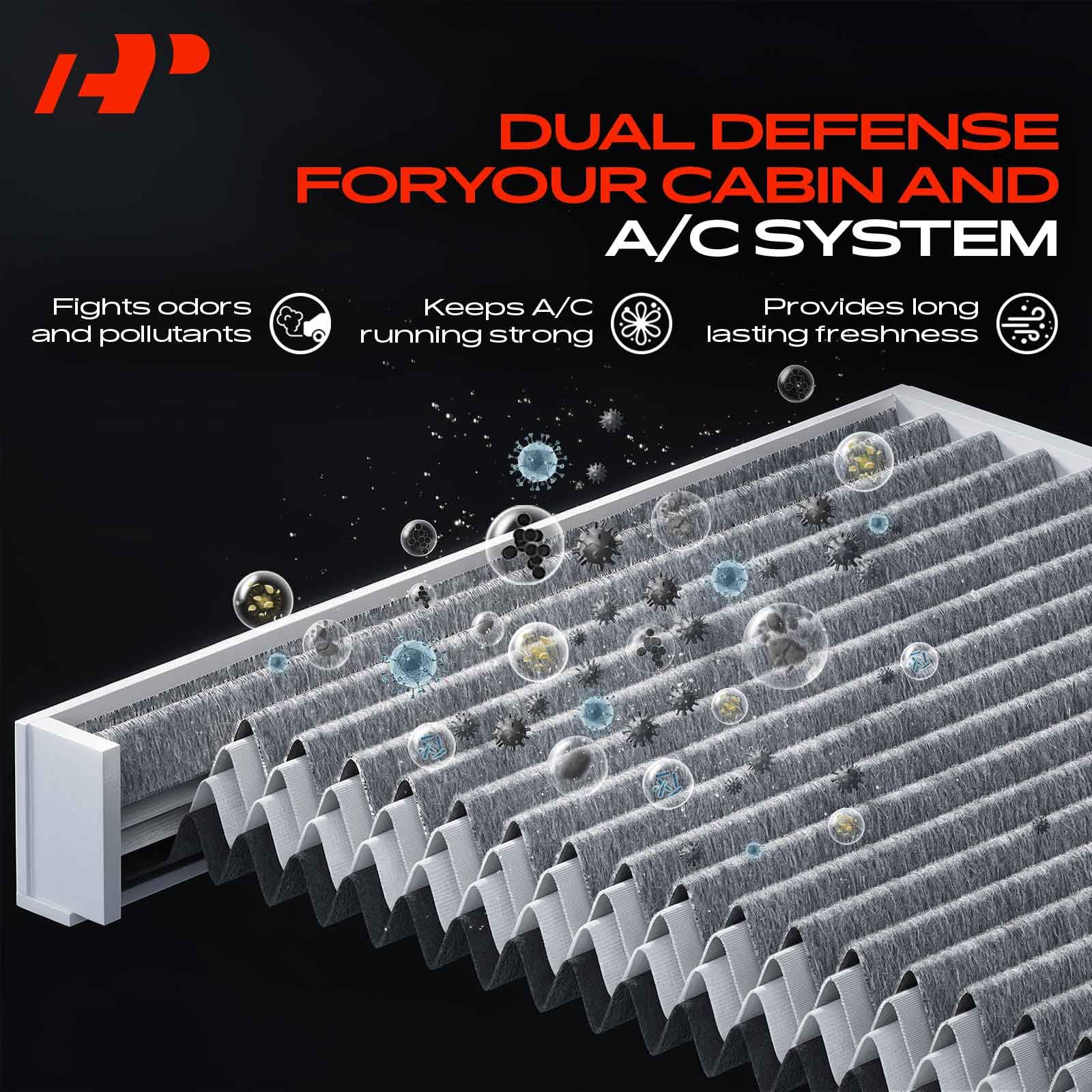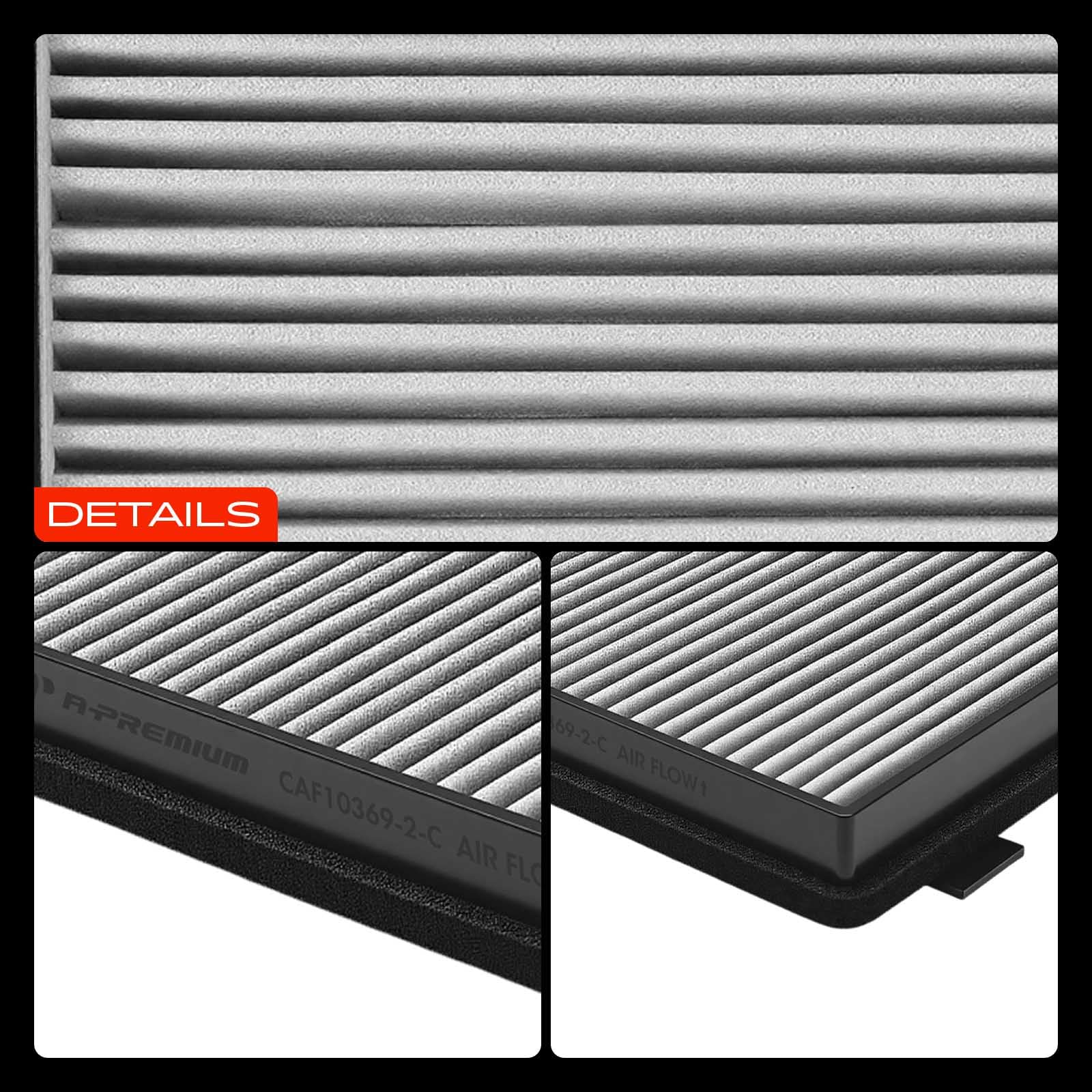 [High-Efficiency Filtration]: A-Premium cabin air filter consists of a multi-layer screen with high filtration efficiency, which helps to prevent airborne contaminants from entering the interior of the vehicle, providing clean air for the driver and passengers.