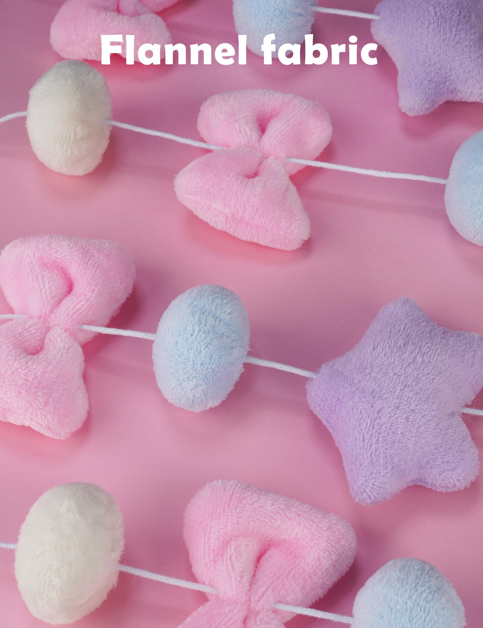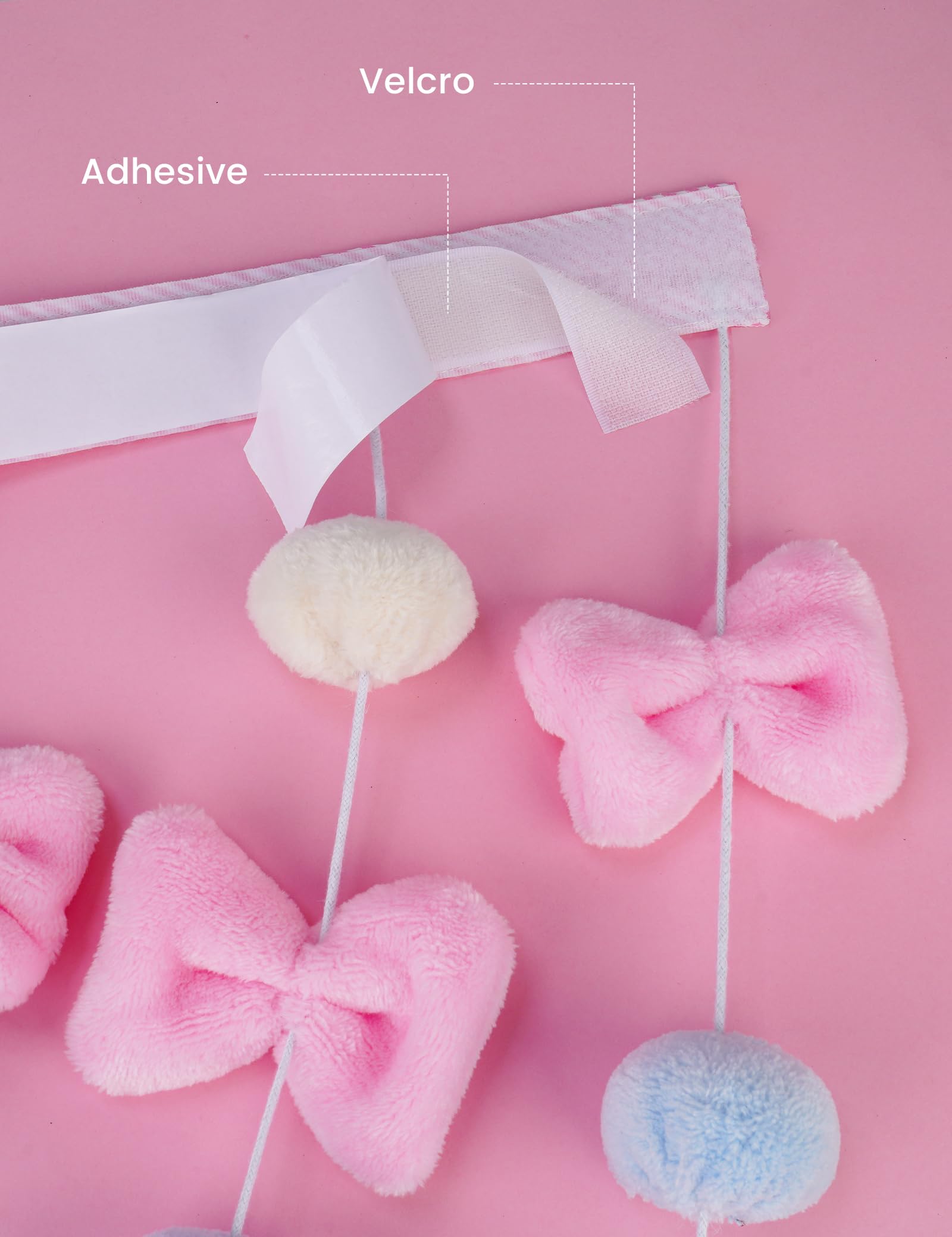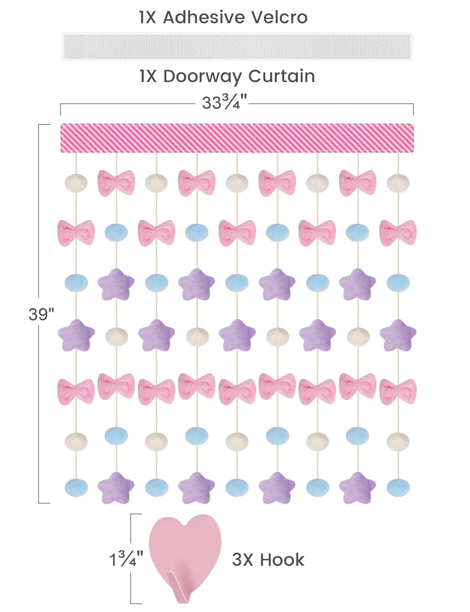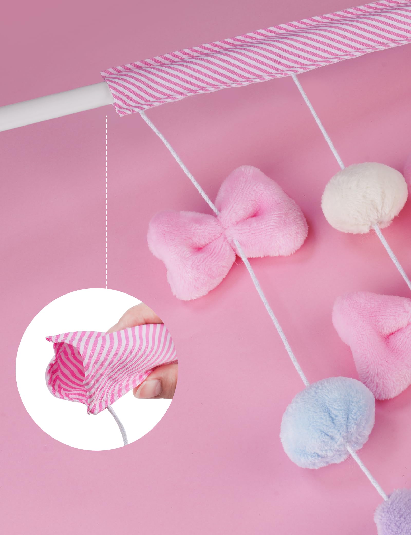 NiHome Fluffy Plush Doorway Curtain, Cute Hanging String Garland Kawaii Wall Hanging Home Decor for Girl Baby Room,Plush Bowknot Pentacle Garland Curtain with Hooks & Adhesive Velcro, 9 Strings
