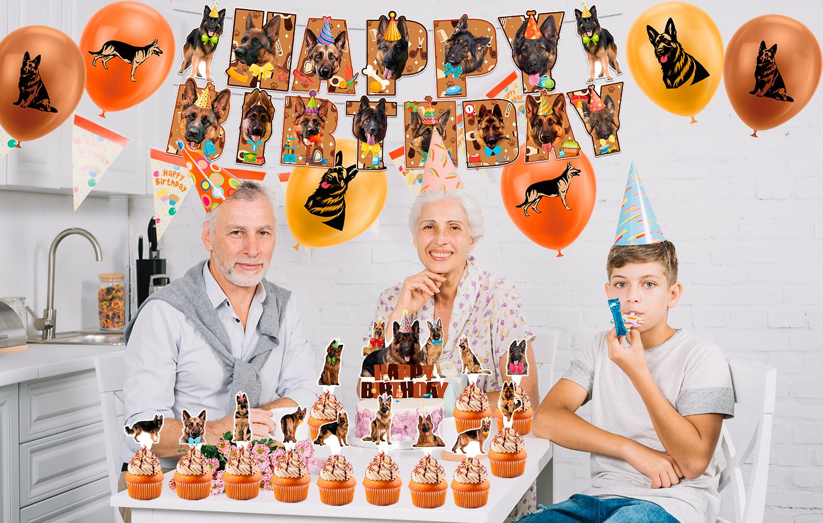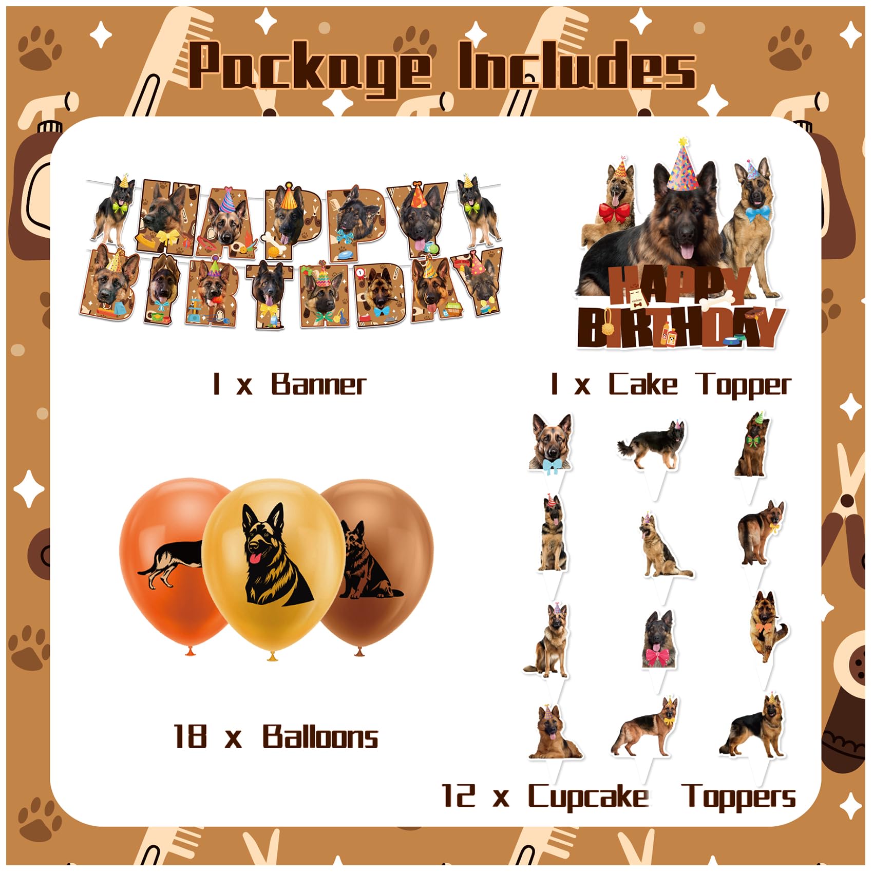 German Shepherd Birthday Decorations: German shepherd party supplies includes 1 HAPPY BIRTHDAY banner, 1 cake topper, 12 cupcake toppers, 18 latex balloons, 1 ribbon. German shepherd party decorations add more fun to your party.