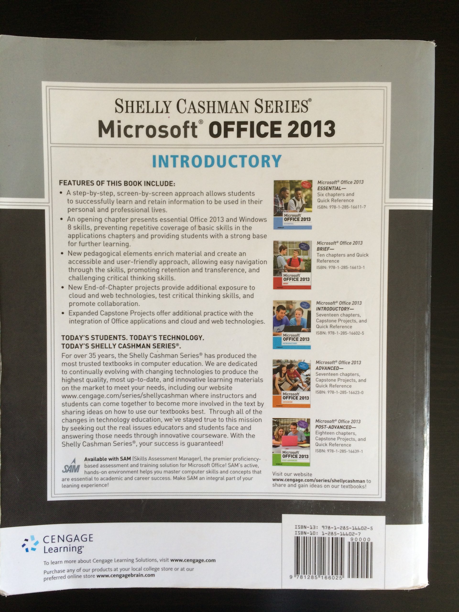 NOTE: This book does not include Access Code Introduce your students to the latest that Microsoft Office has to offer with the new generation of Shelly Cashman Series books! For the past three decades, the Shelly Cashman Series has effectively introduced computer skills to millions of students. With Microsoft Office 2013, we're continuing our history of innovation by enhancing our proven pedagogy to reflect the learning styles of today's students. In this text you'll find features that are specifically designed to engage students, improve retention, and prepare them for future success. Our trademark step-by-step, screen-by-screen approach now encourages students to expand their understanding of Microsoft Office 2013 software through experimentation, critical thought, and personalization. With these enhancements and more, the Shelly Cashman Series continues to deliver the most effective educational materials for you and your students.