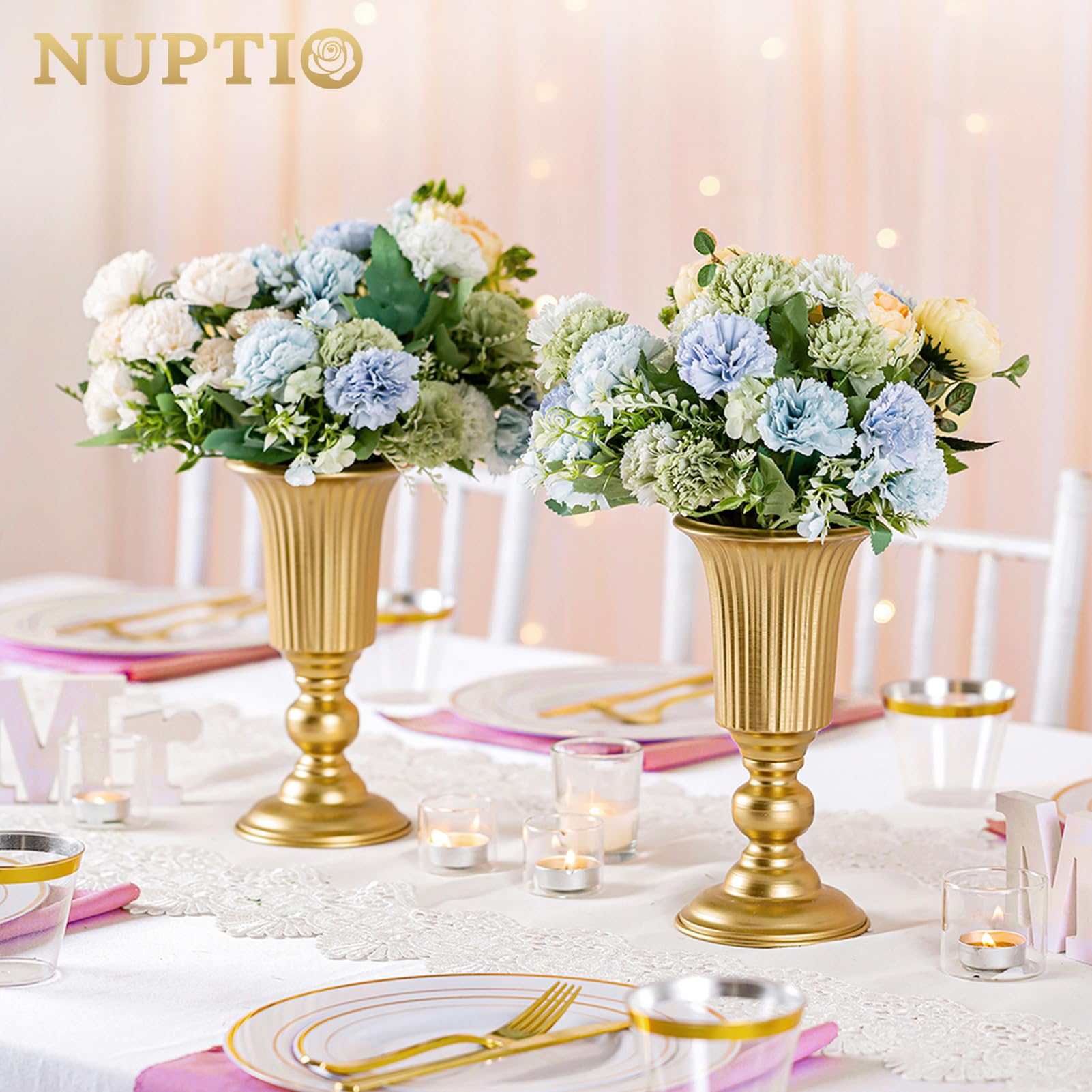 PACKAGE INCLUDES: 2× 23.2cm/9.13" height wedding centerpieces vase. The base diameter is 11cm/4.33" wide, The opening diameter is 11.5cm/4.53" wide. Flower in the pictures are not included.