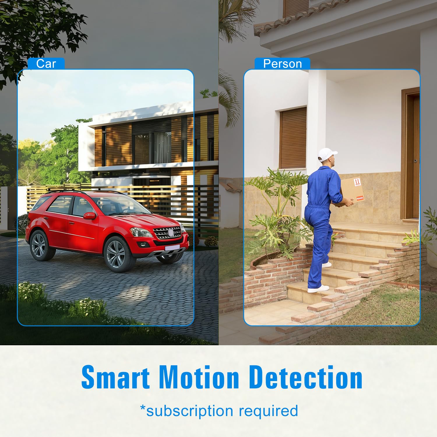 【Smart PIR Motion Detection with AI Recognition】This outdoor camera featuring advanced AI motion detection, this outdoor security camera accurately identifies people, vehicles, pets, and packages. Its smart PIR sensor triggers real-time alerts, instantly notifying you via the app when motion is detected.