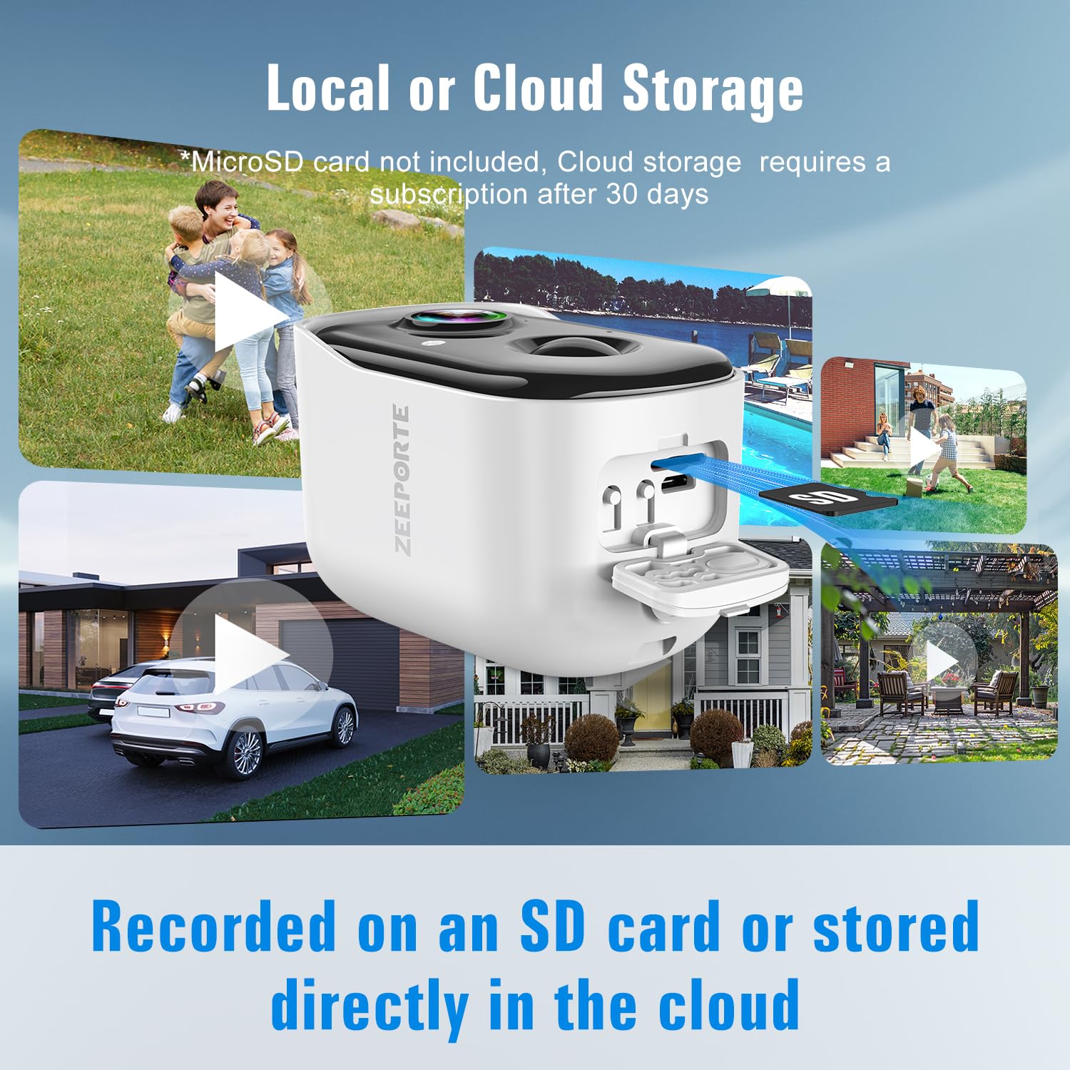 【SD & Free 3-Day Cycle Cloud Storage】Security camera wireless outdoorr has dual storage mode. Micro SD card (up to 128G, not included) , 3-day rolling cloud storage of two year( 10s, 15s, 20s recordings loop coverage)and 30-day trial of advanced features that include AI recognition, upgraded cloud memory, custom alert areas and etc, the advanced features needs to be subscribed after a 30-day trial. Also you can share live view with family to protect your home together.