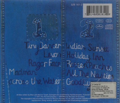 Amazon.com Named for a cut that originally appeared on his Tumbleweed Connection album, Madman Across the Water yielded some of Elton John's earliest AOR staples. "Tiny Dancer," like the previous "Your Song," was introduced and carried by John's masterful piano composition. The song's sense of longing also employed the falsetto chorus that would become as much of a trademark as his costumes. "Levon," another entry into the John/Taupin "ballad of" category, is one of their finest pieces. The orchestration gives the song not only its sense of foreboding, but also its release of tension as the song ends. "Rotten Peaches" became a favorite, as did "Holiday Inn." There's also a different interpretation of the title track than appeared on Tumbleweed Connection. --Steve Gdula Product description Remastered killer 1971 album featuring "Tiny Dancer".