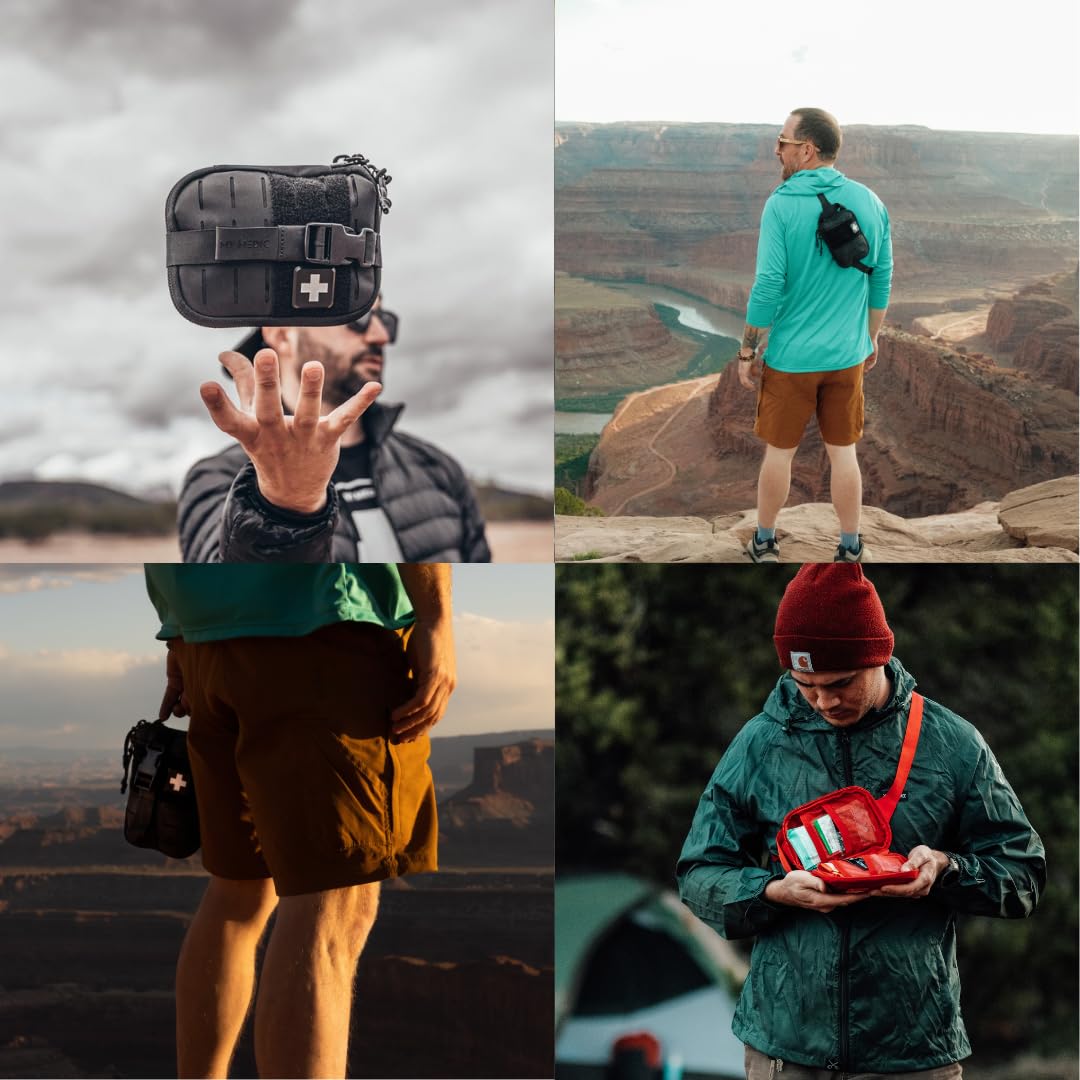 COMPACT SURVIVAL KIT -This small first aid kit, equipped with over 45+ life-saving supplies, is a camping essential for both minor and severe injuries. Ensure you have the necessary camping supplies with our first aid kit for camping.