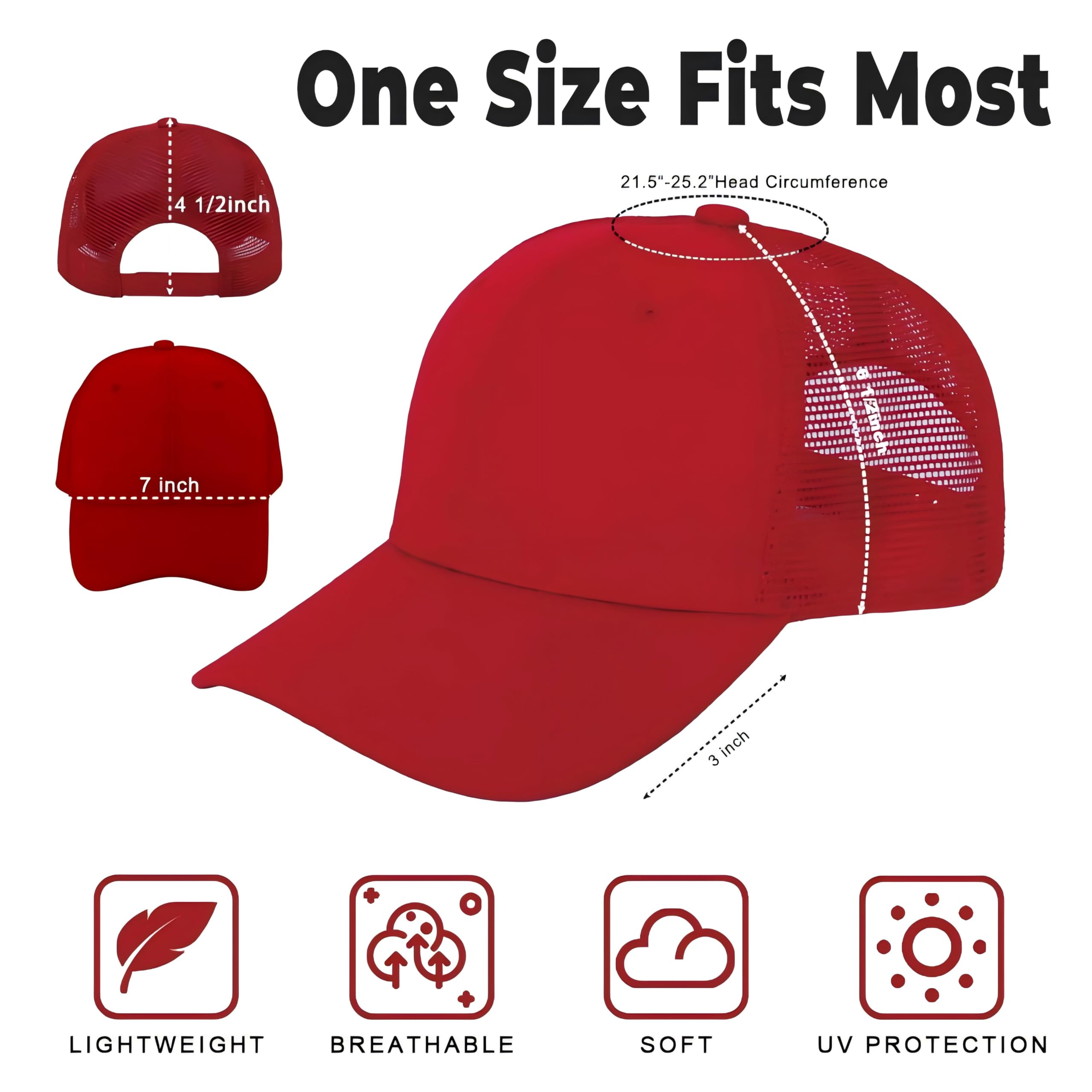 [Multi-Purpose Unisex]: These unisex mesh trucker hats are perfect for sports, outdoor adventures, and casual wear. Ideal for personal or business use, including wholesale promotional events ,team apparel and charitable donations.
