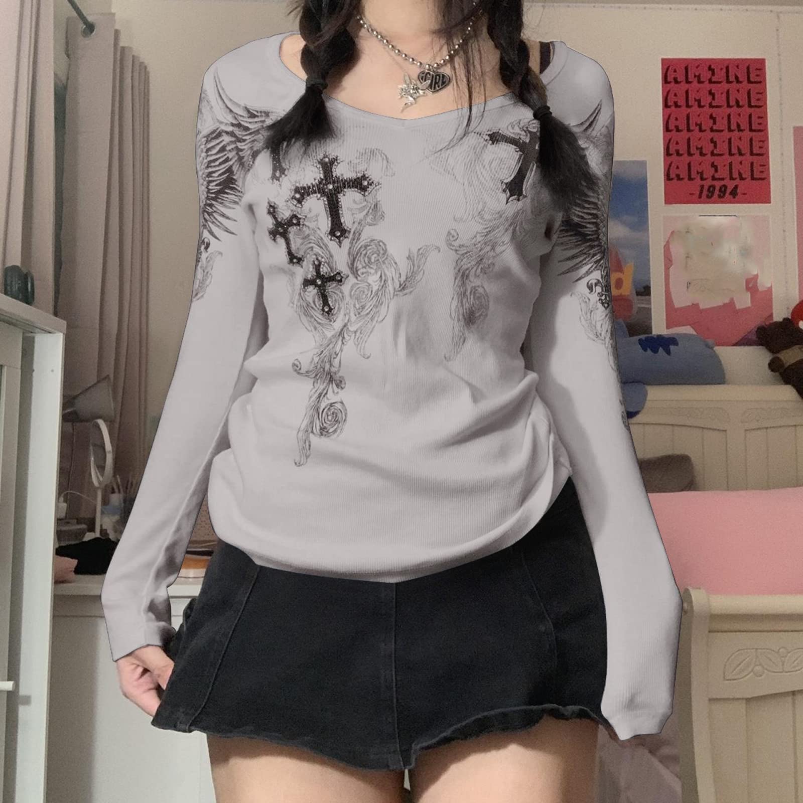 MATERIAL: This women fall y2k top is made of polyester, made of high quality material, super soft and stretchy, moisture wicking, good breathability, safety tested to be free of harmful substances.