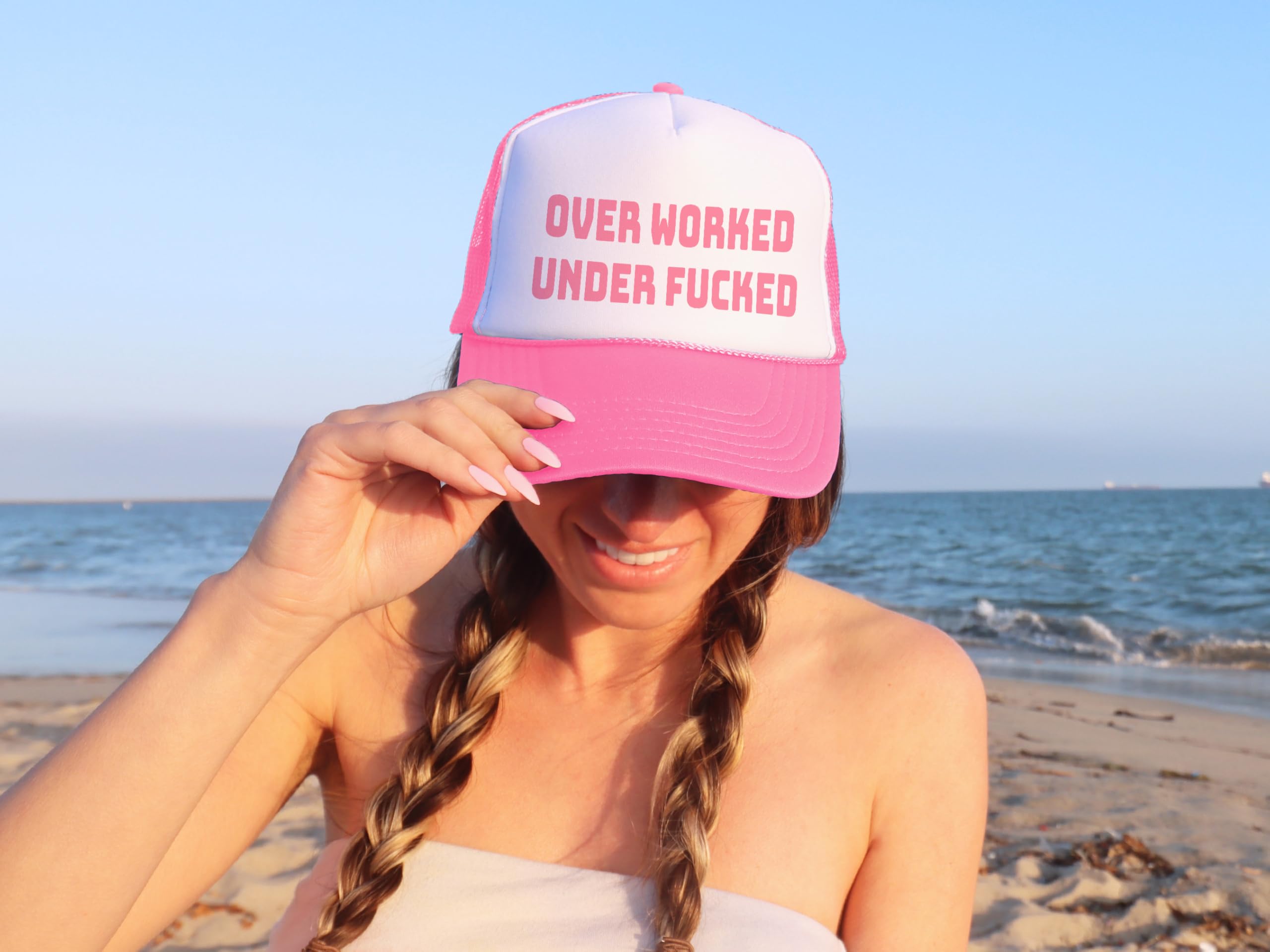 Nukem Cap Company Funny Women's Trucker Hat - Trucker Hats for Women - Perfect Gag Gift for Naughty Gift Exchange Trucker Hats Neon Hot Pink (US, Alpha, One Size, Over Worked Under Fucked)