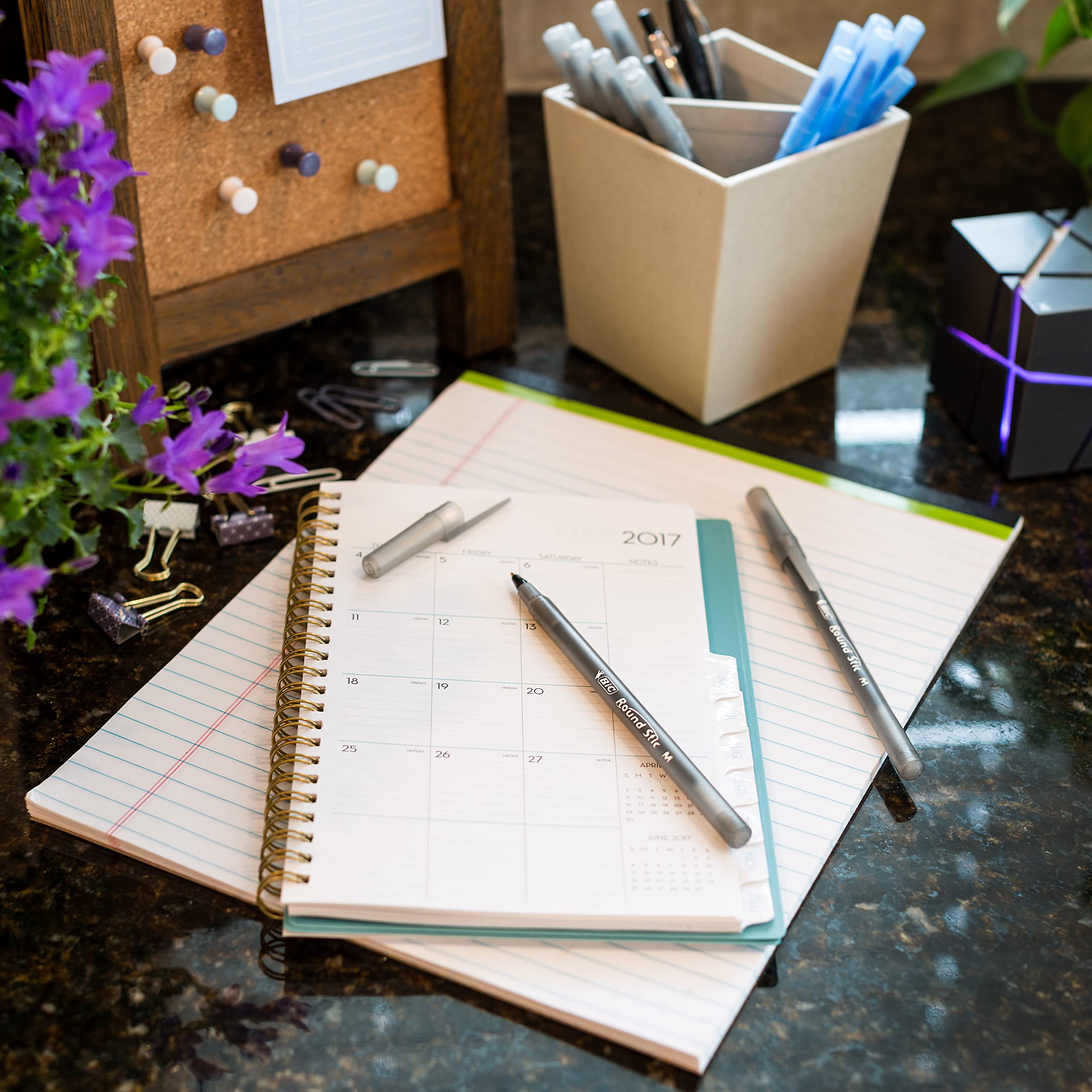 Ballpoint pens feature flexible round barrel for writing comfort.
