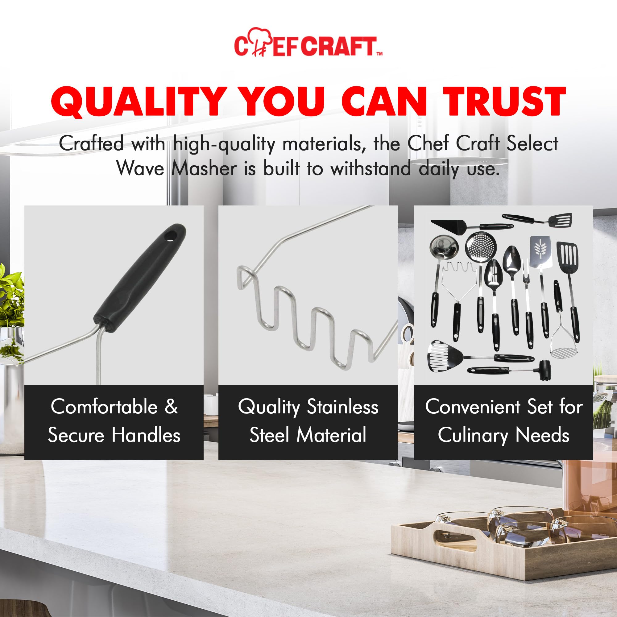 An essential in any kitchen, this stainless steel masher offers an ergonomic plastic handle and a stainless steel construction which resists rust. It is perfect to use with stainless steel and cast iron, or any pan that does not have a non-stick coating. Reach for this Select Masher every time that you are cooking with stainless steel and you won't go wrong!