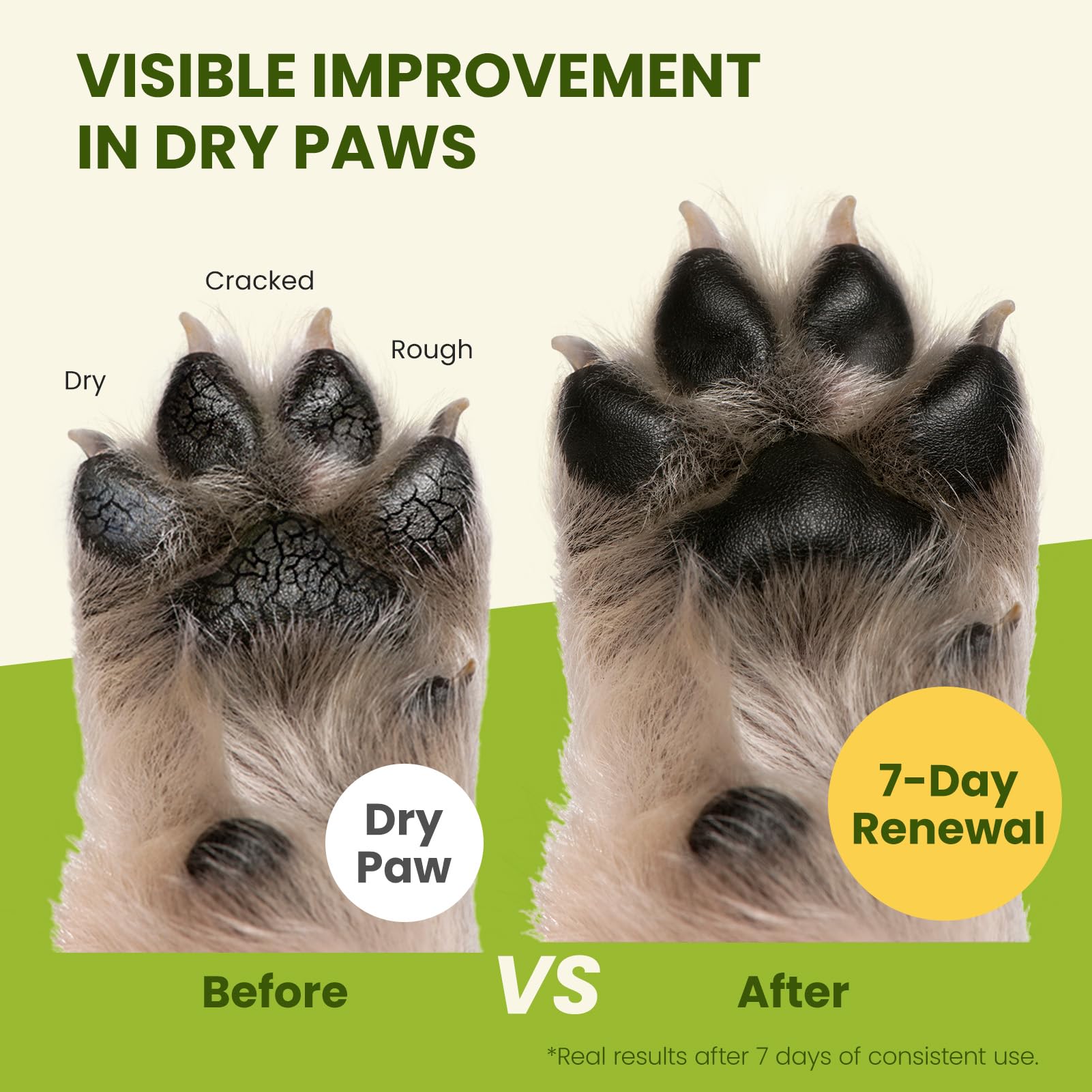 【Fast-Acting & Easy to Use】 Get visible results in just a few days! Apply the dog paw balm evenly to your pet’s paw pads, nose, or other affected areas (elbows, hot spots, minor wounds) and gently massage for absorption. For pets who tend to lick it off, use dog socks to allow full absorption. Apply 2-3 times daily for better results, especially while your pet is resting. It’s the perfect balm for dogs’ paws and noses and is ideal for paw-licking relief for dogs.