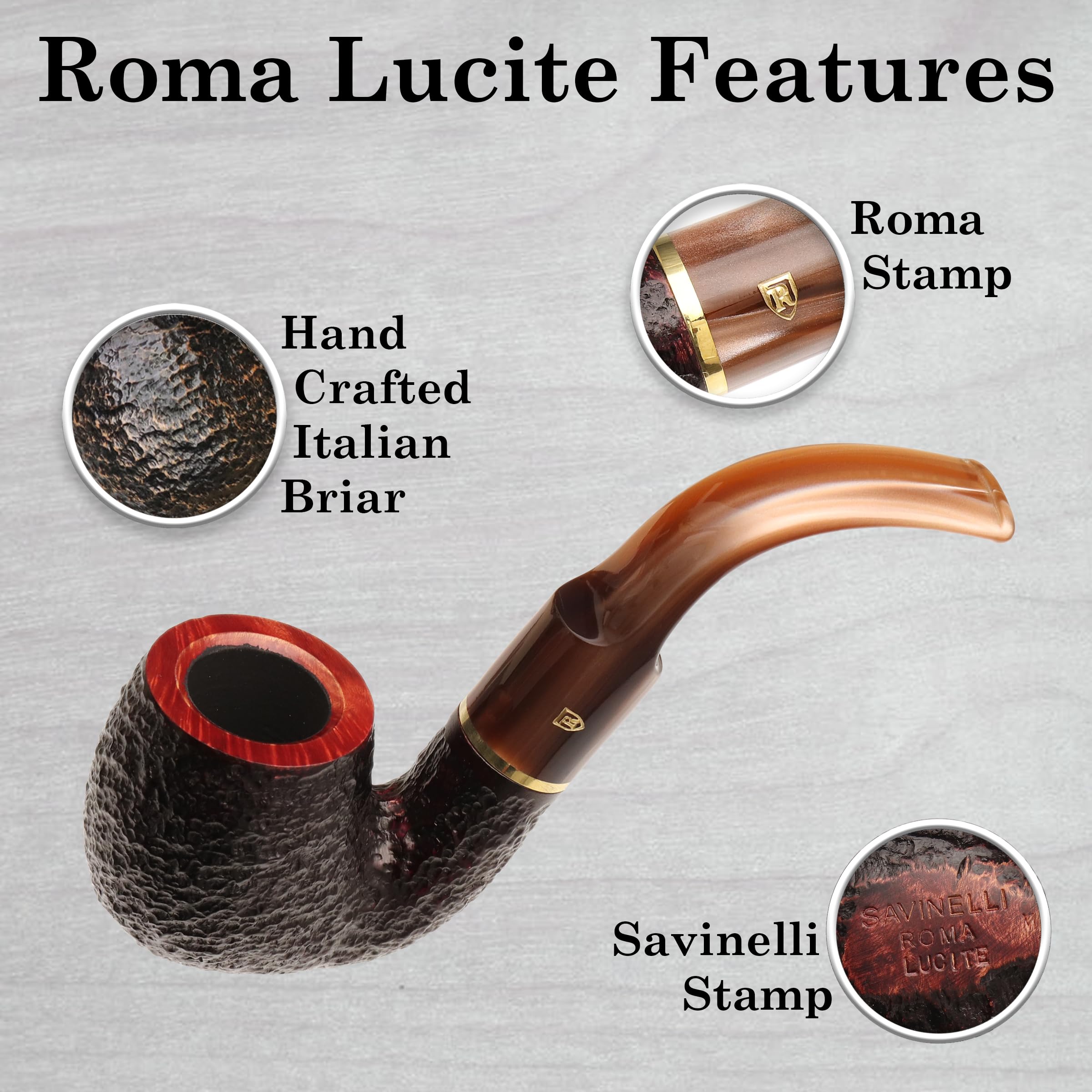 A wonderful hand crafted collector's piece made with Mediterranean briar wood in Italy, the Roma is a series dedicated to one of Italy's most historic and celebrated cities, Rome, and features a dark wood finish with an "R" coat of arms stamp