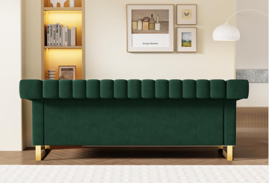 Soft, velvety fabric in retro green creates a luxuriously cozy seating experience.