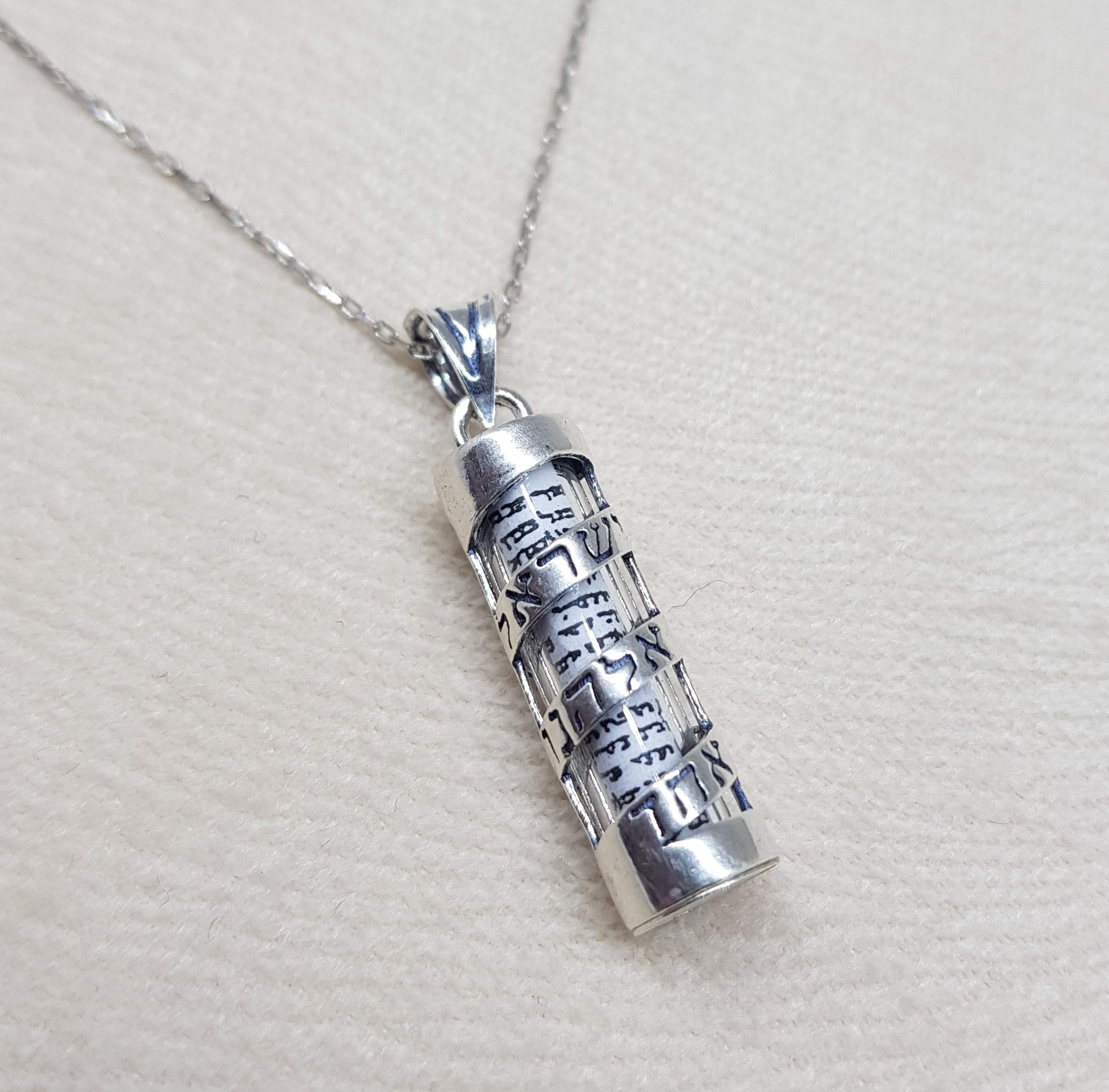 925 Sterling Silver Mezuzah Pendant and Glass and Silver Chain