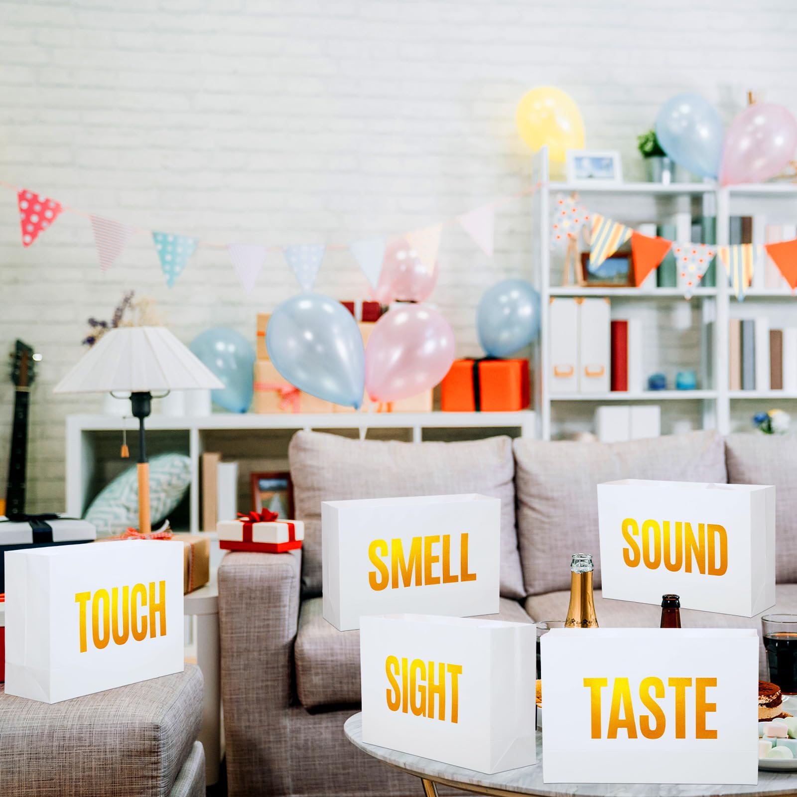 Intricacy: you will get 5 pcs 5 senses gift bags for him her with labels embellished with stamped English lettering with the words [TASTE], [TOUCH], [SMELL], [SOUND] and [SIGHT] on each bag, these add charm, making your gifting experience memorable