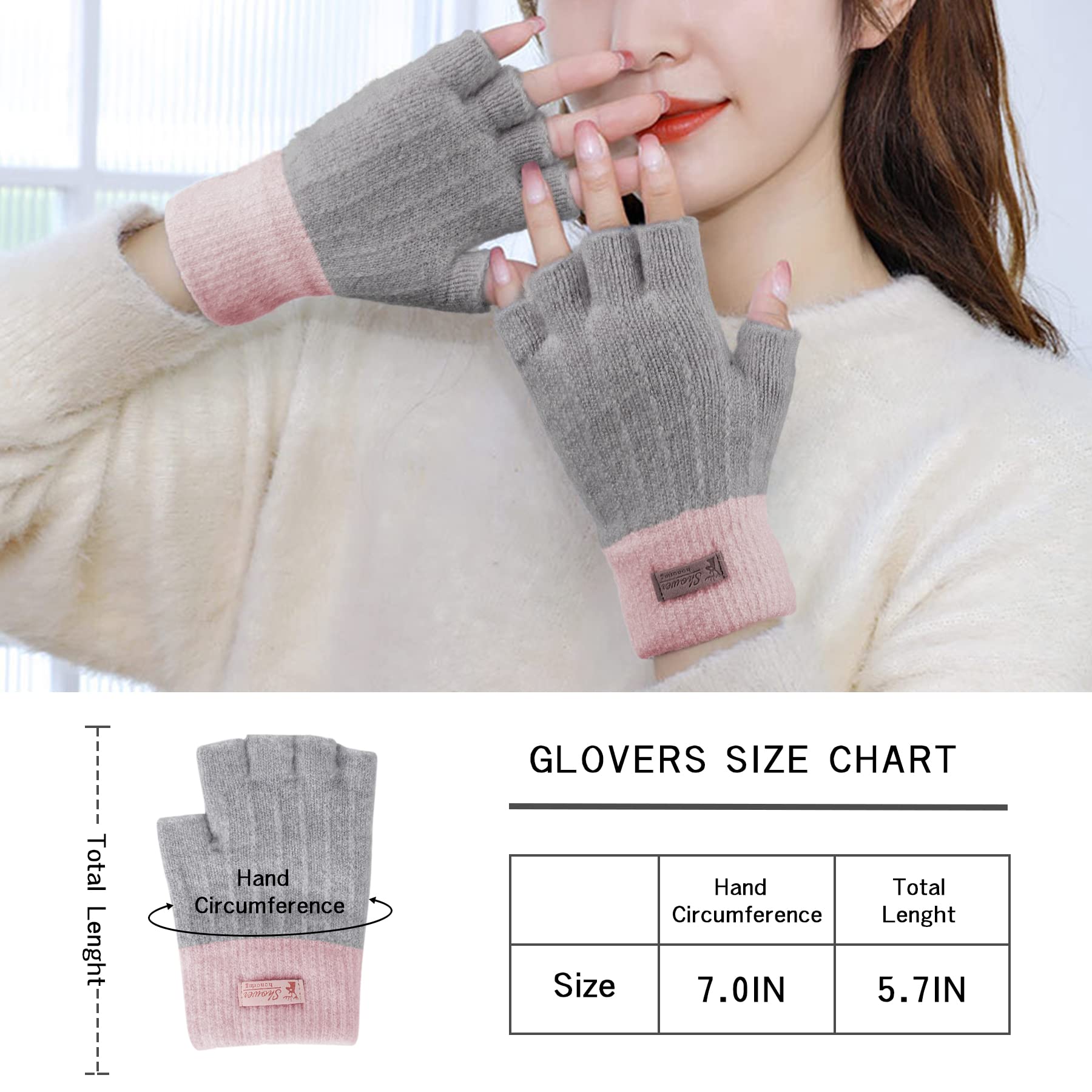 [VIBRANT & VERSATILE COLORS]: We offer a variety of colors to choose from: black fingerless gloves, pink fingerless gloves, beige fingerless gloves, blue fingerless gloves, and grey fingerless gloves. These womens gloves are designed with tasteful color combinations, ensuring they effortlessly complement your diverse winter wardrobe.