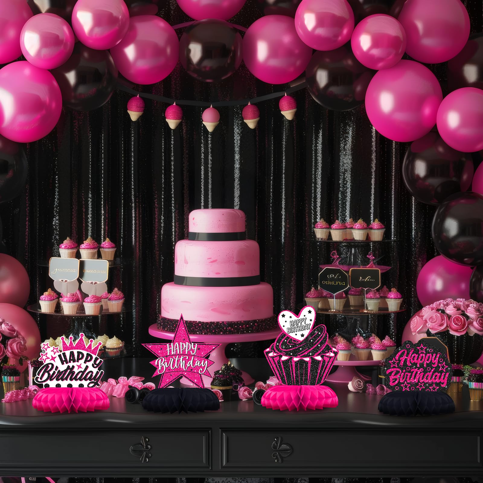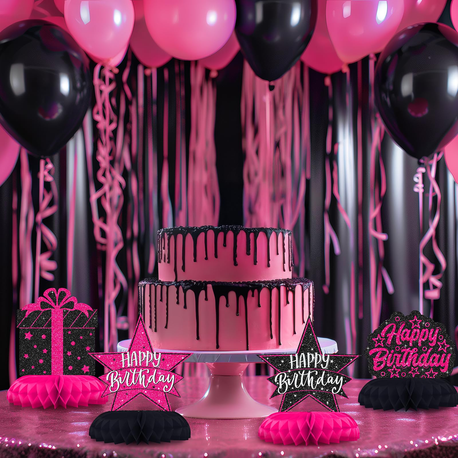 Perfect for Girls and Women’s Parties – Ideal happy birthday table decorations for teens, cool girls, or milestone birthdays in a hot pink party theme.