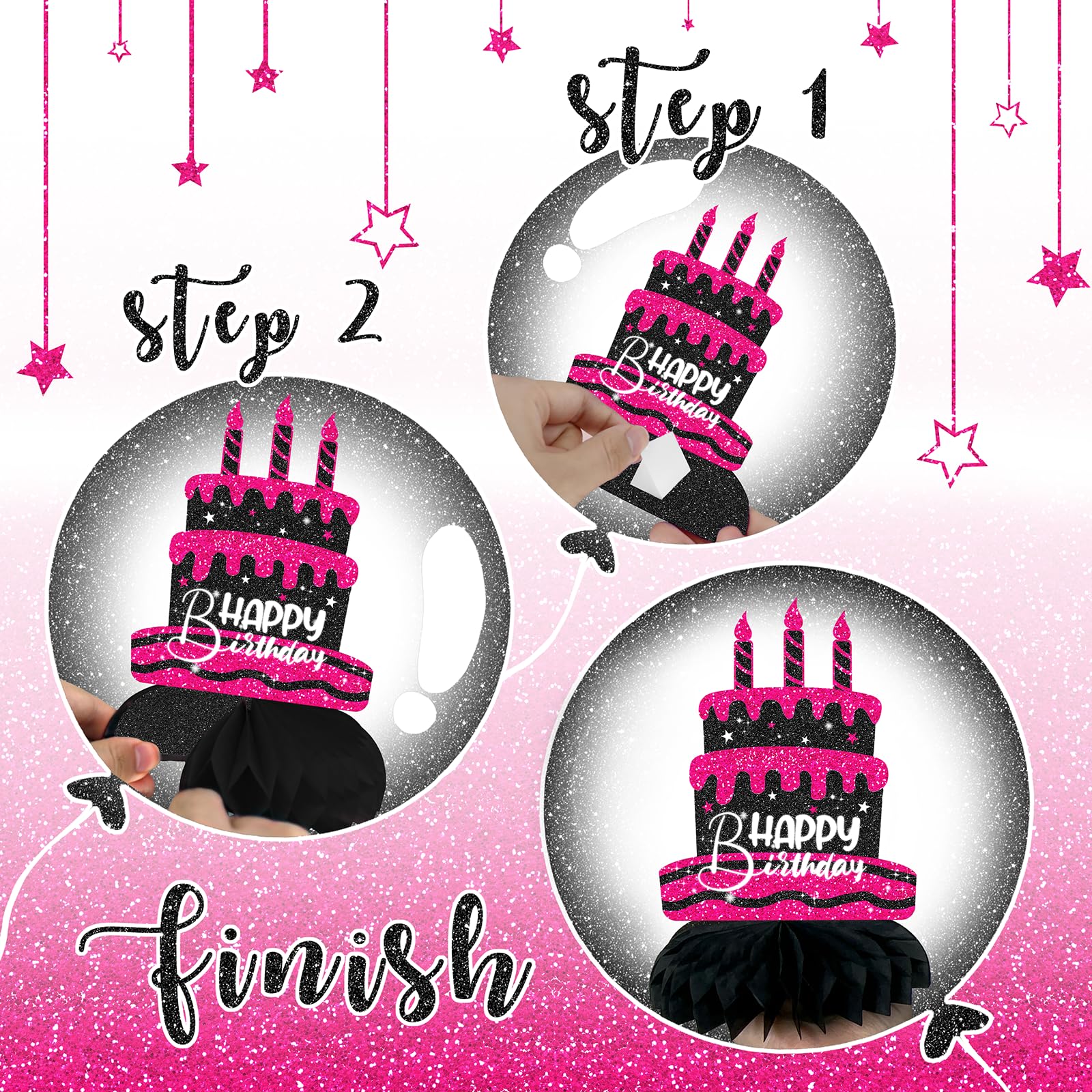 No Tools Needed for Setup – Each centerpiece is pre-folded and uses a peel-and-stick base for quick, simple assembly. Great hot pink and black party decorations with zero hassle.