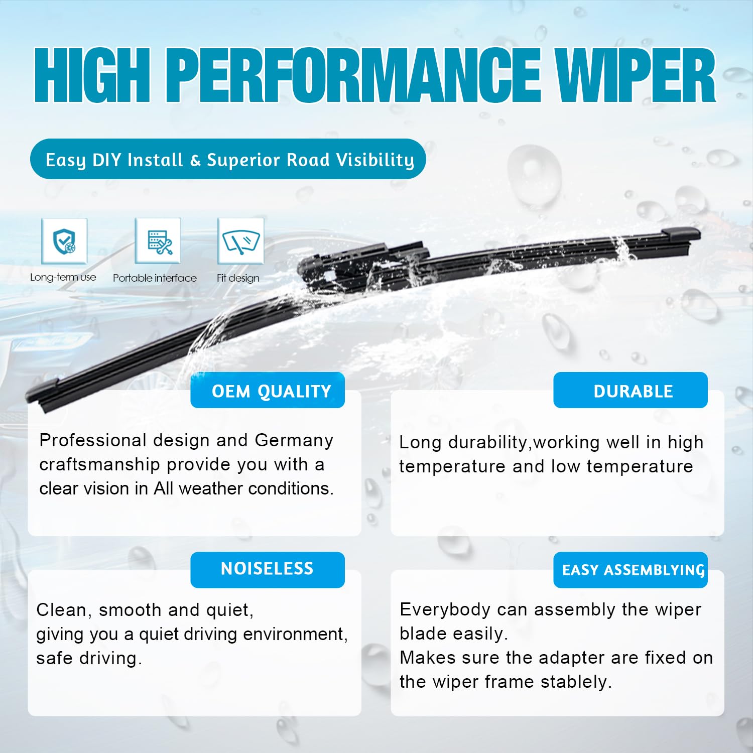 【0 Streak Wiping】: Conforms to windshield curve, make your way forward bright.