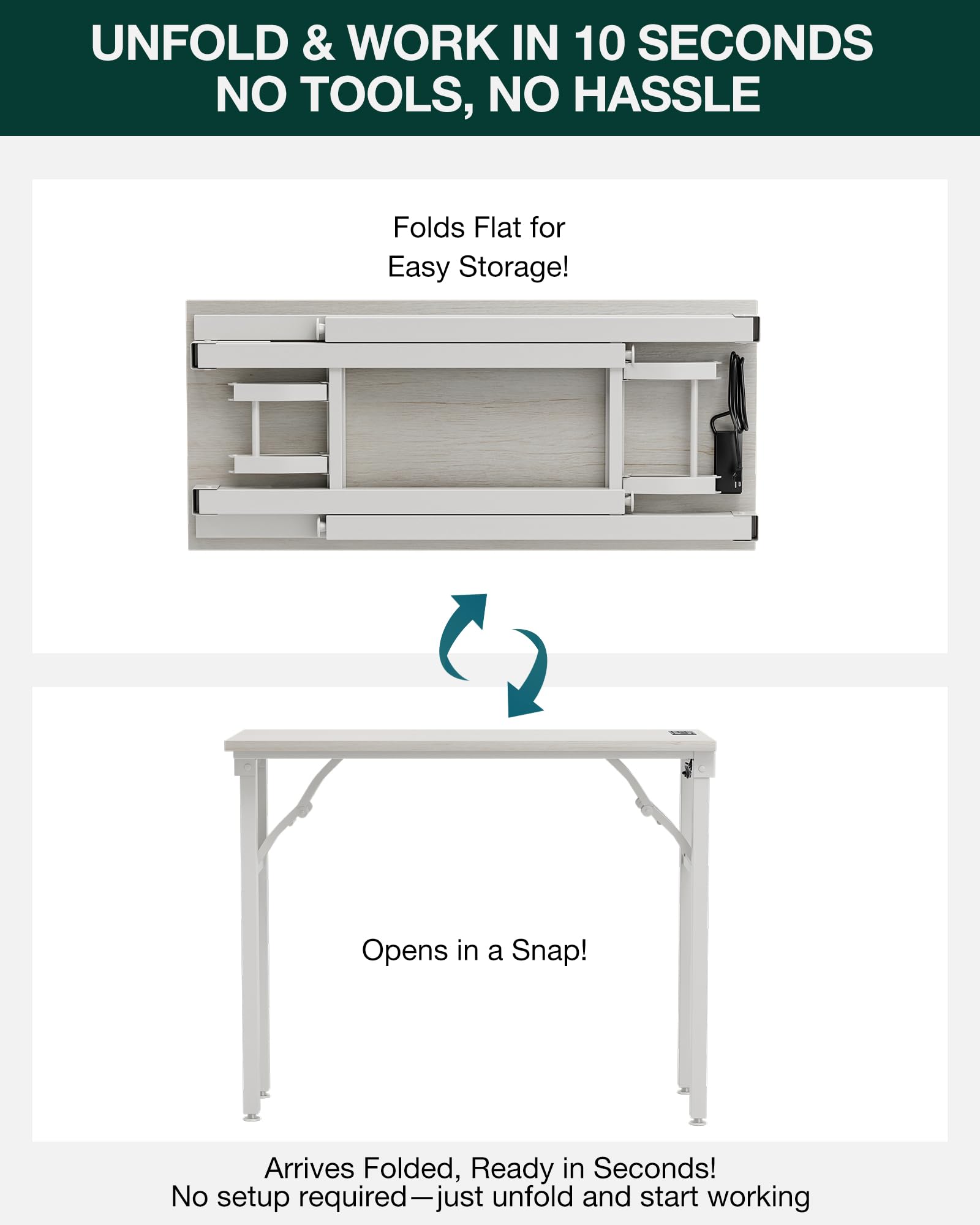 ππ§π’π’π-ππ₯ππ, ππ‘π¦π§ππ‘π§ π¦ππ§π¨π£ ππ‘ ππ¬ π¦πππ’π‘ππ¦ β Forget complicated manualsβthis folding desk requires zero assembly. Simply unfold in seconds and enjoy a spacious 35.8" x 15.7" work surface. Itβs the ideal no-assembly desk for students, remote workers, or anyone needing a quick, efficient setup