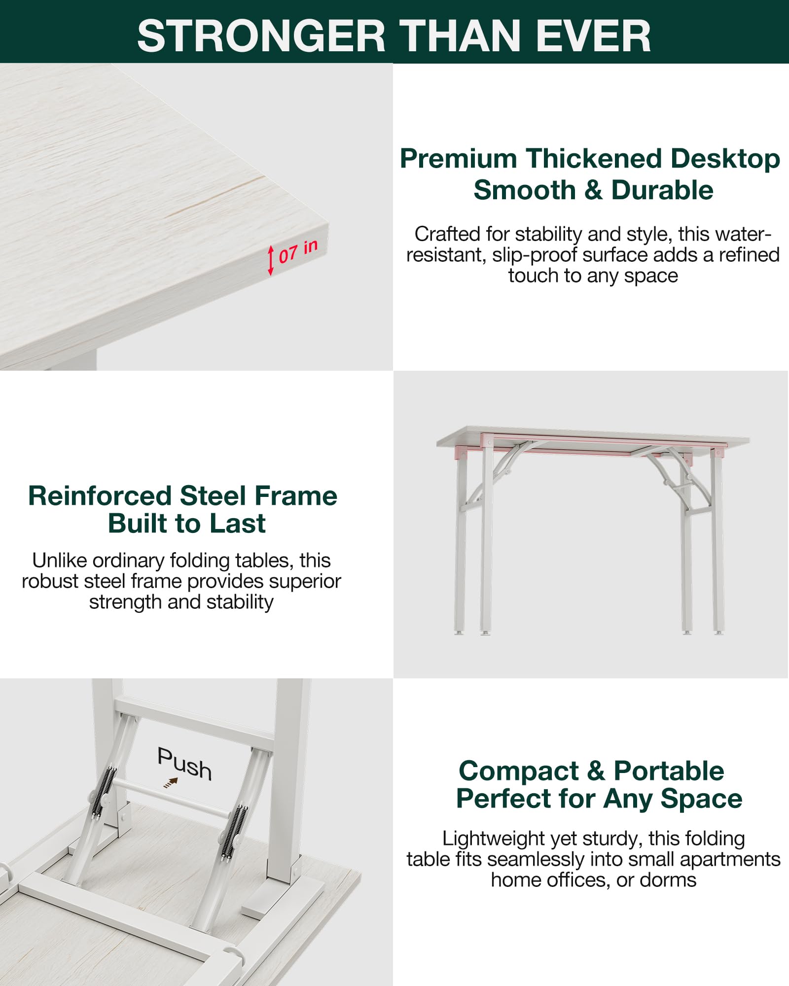 ππ¨ππ§π₯π-π¦πππ , π¦π£πππ-π¦ππ©ππ‘π π¦π§π’π₯πππ β When folded, the desk is just 2.9" thickβeasily stored behind doors, under beds, or in closets. Lightweight and portable, itβs perfect for compact living areas or anyone needing a foldable table thatβs easy to move