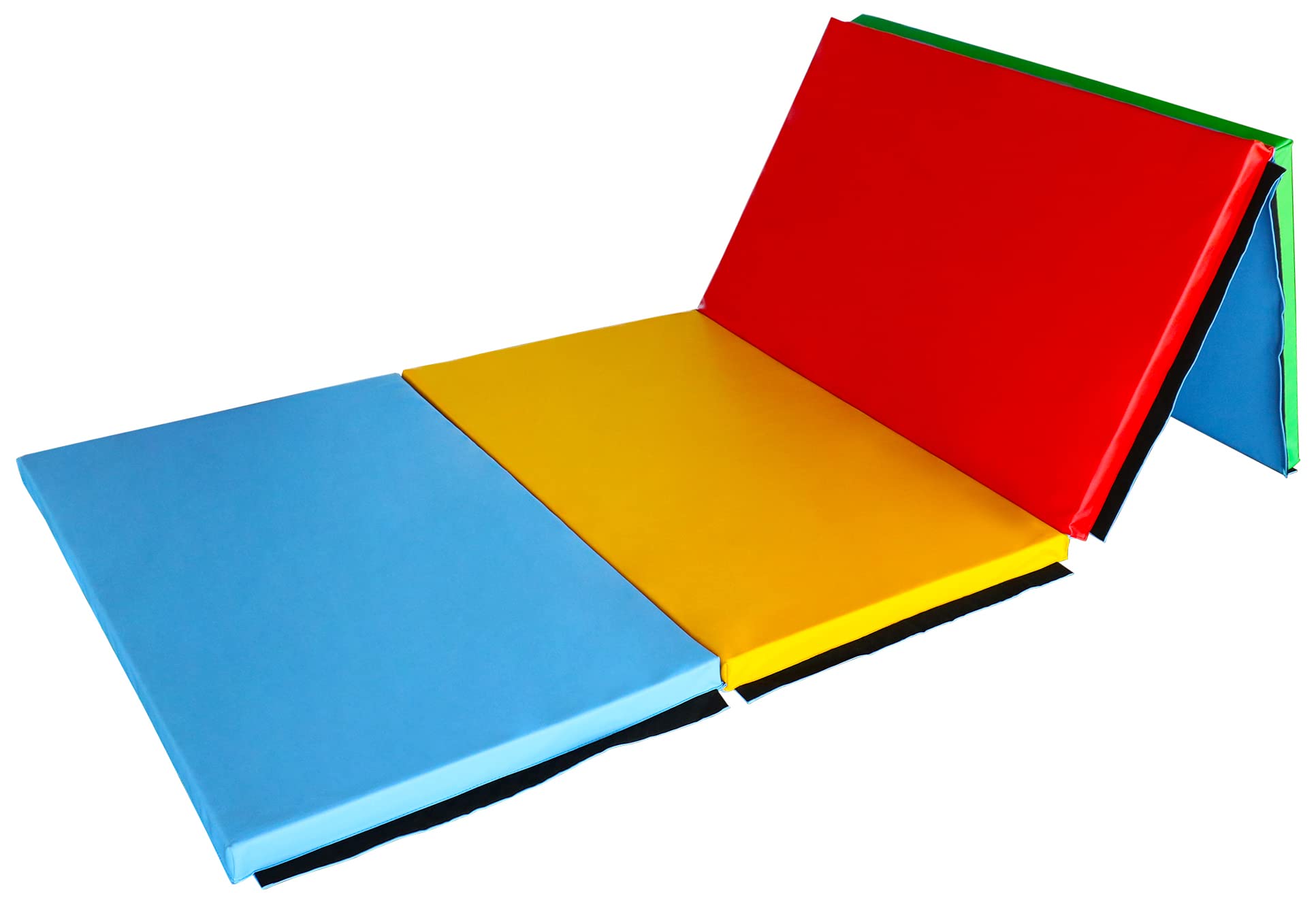 Versatile Exercise Mat: Colorful 4-panel 10 ft. x 4 ft. x 2 in. folding mat for gymnastics, yoga, Pilates, aerobics, martial arts & more; offering a safer, cushioned surface for a variety of workouts