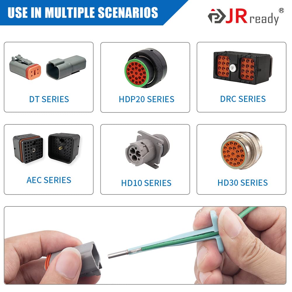 【Tools Compatibility Matters】1.If you're unsure if our product fits your connector, contact our Amazon customer service with your application details. We will recommend the correct tool for you. 2.Using incorrect tools may damage connectors or fail to remove terminals. If you encounter issues, contact us with your connector and terminal diameters, and connector aperture. 3.We only support after-sales issues for JRready branded products. Ensure our product has the JRready logo, as we do not handle issues with counterfeit items.