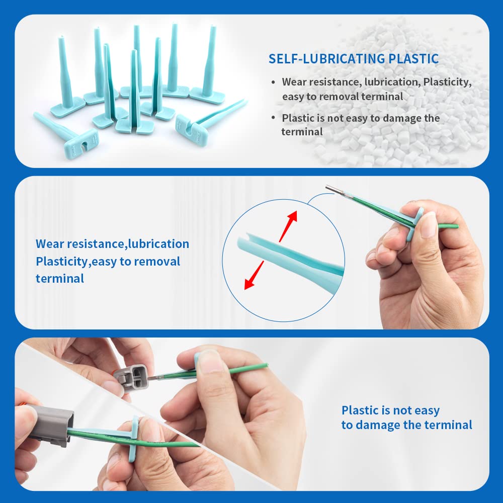 【Stamped Contacts Terminal Removal Tool Kit】Compact, easy-to-use, and manufactured of heavy duty plastic to remove Stamped Contacts without damage to the wire, insulation, connector seals, or connector body.suitable for 16, 18 AWG measuring Wire applications.