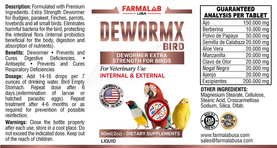 Farmalab Natural Dewormer Internal & External 100 Tabs Poultry - Vitamin for Poultry Rooster Hen Chicken Baby Chick