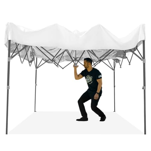 The ONE-UP Technology design enables ONE person to easily open and close the canopy from the center of the shelter without the hassle of locking and unlocking the legs. One pinch free push and you are ready to go! Featuring a clear span center for expanded headroom, this lightweight 10' x 10' frame is perfect for a day at the beach or park. Easy release, locks in place, compact when folded.