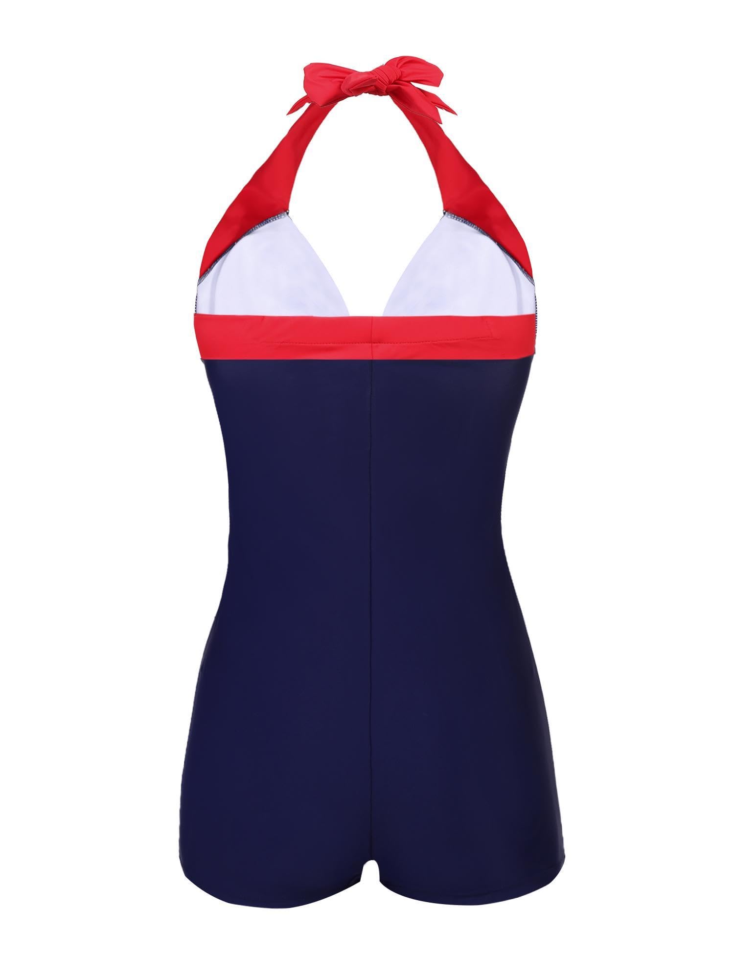 Vintage One Piece Swimsuits Features: adjustable halter neck, front tie, button, vibrant colors, striped/polka dot/print decoration with lining, cute and sexy, fits as expected for curvy figure