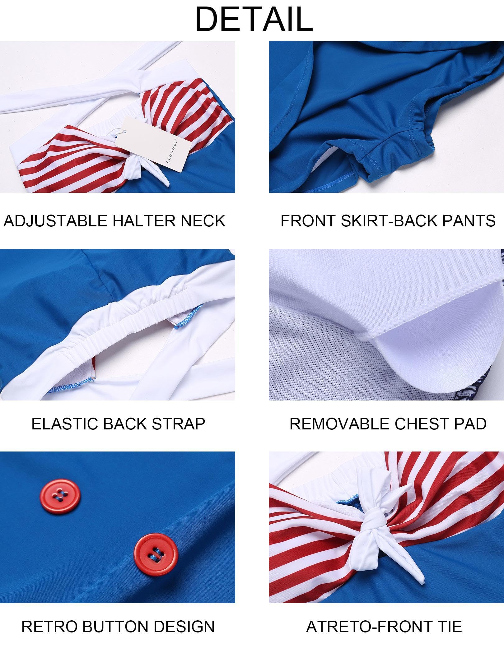Ekouaer Womens One Piece Swimsuits Vintage Striped Skirt Bathing Suit Vintage Retro Push Up Swimwear Blue