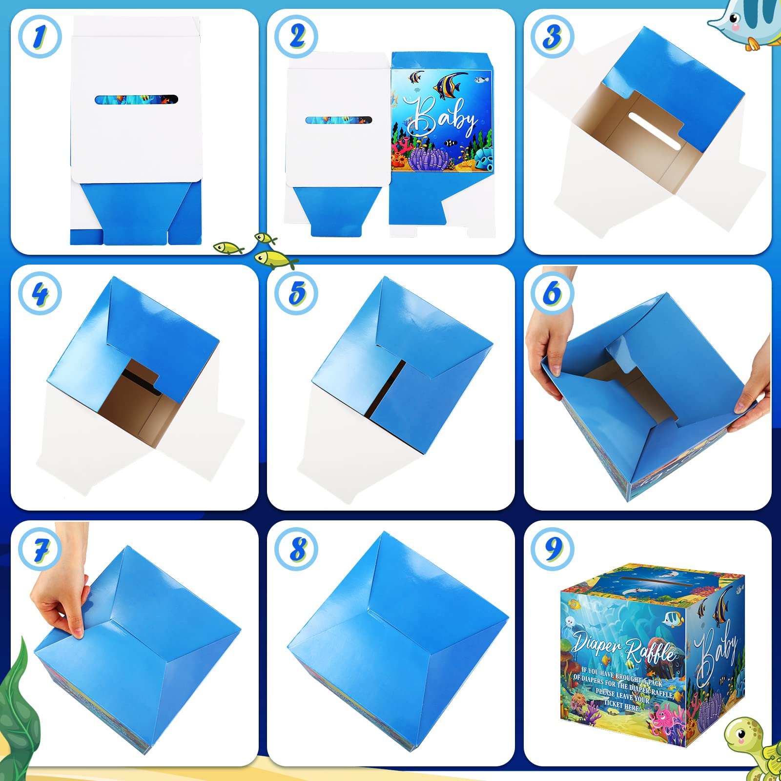 Easy to Install: you can easily install the raffle ticket box along the creases, or fold it in the correct way as shown in the picture, simple and convenient; After that, you can put the diaper raffle cards into the box through the slot on the top