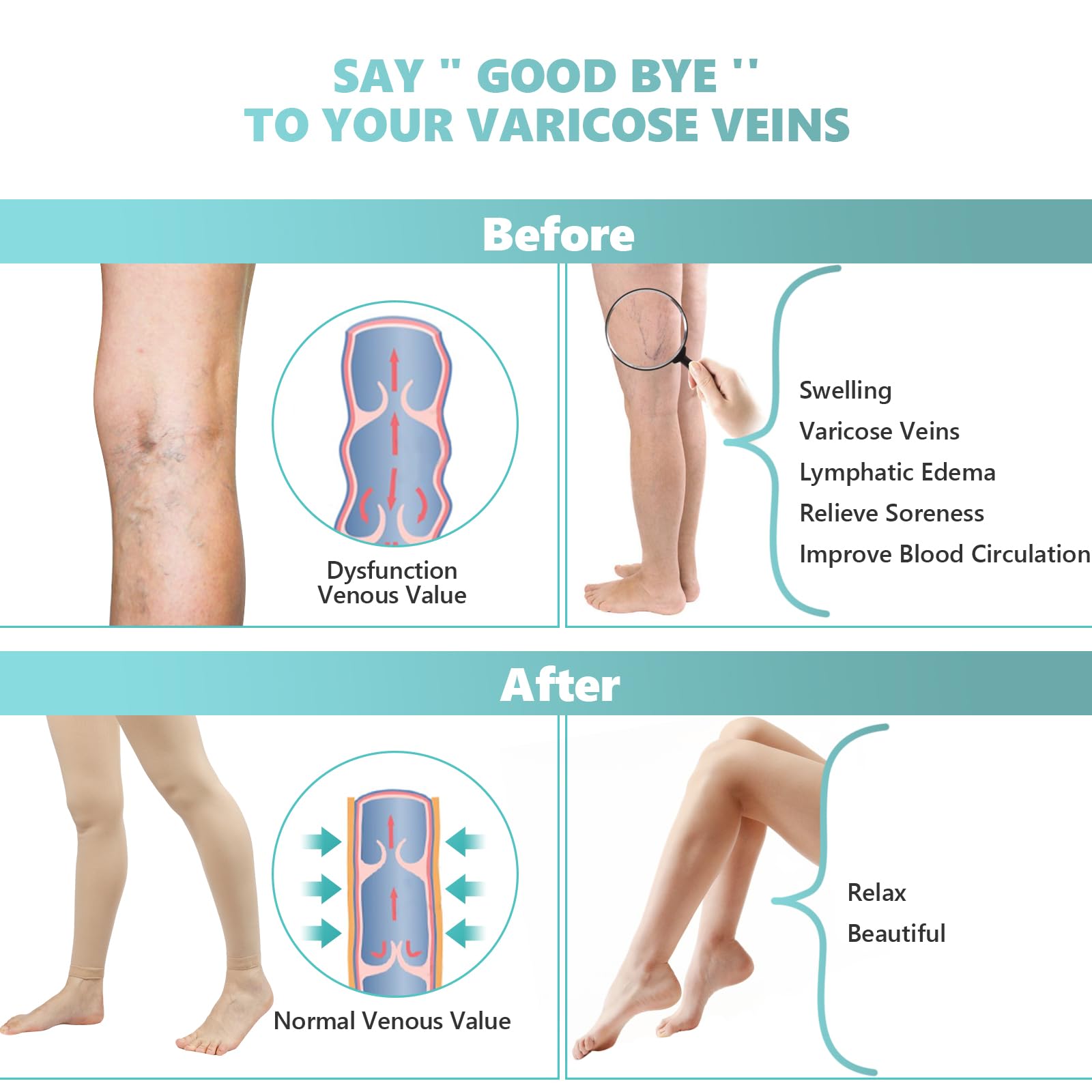 VARIOUS SIZES: Our compression pantyhose range from S to 4XL to avoid the problem of being too tight or too small. You can choose your size according to the size guide. The footless design is more fashionable and easy to put on and take off. The size is redesigned according to the human body structure. There are five sizes to fit most people.