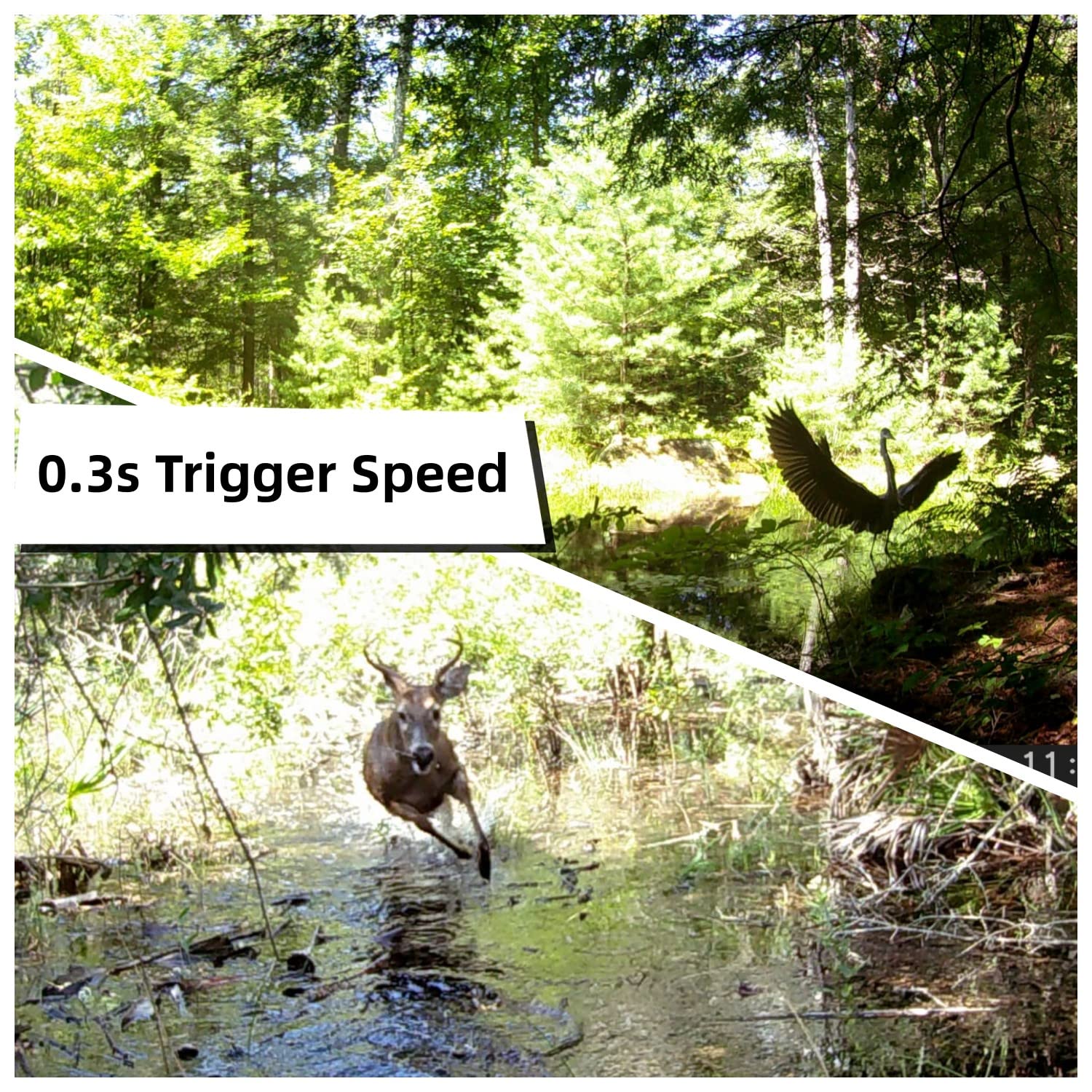 Fast trigger speed: The WOSODA trail cameras will be triggered instantly in 0.3s without delay, once detecting the movement, you will never miss any exciting moments even at night, and the trigger distance is up to 60ft.