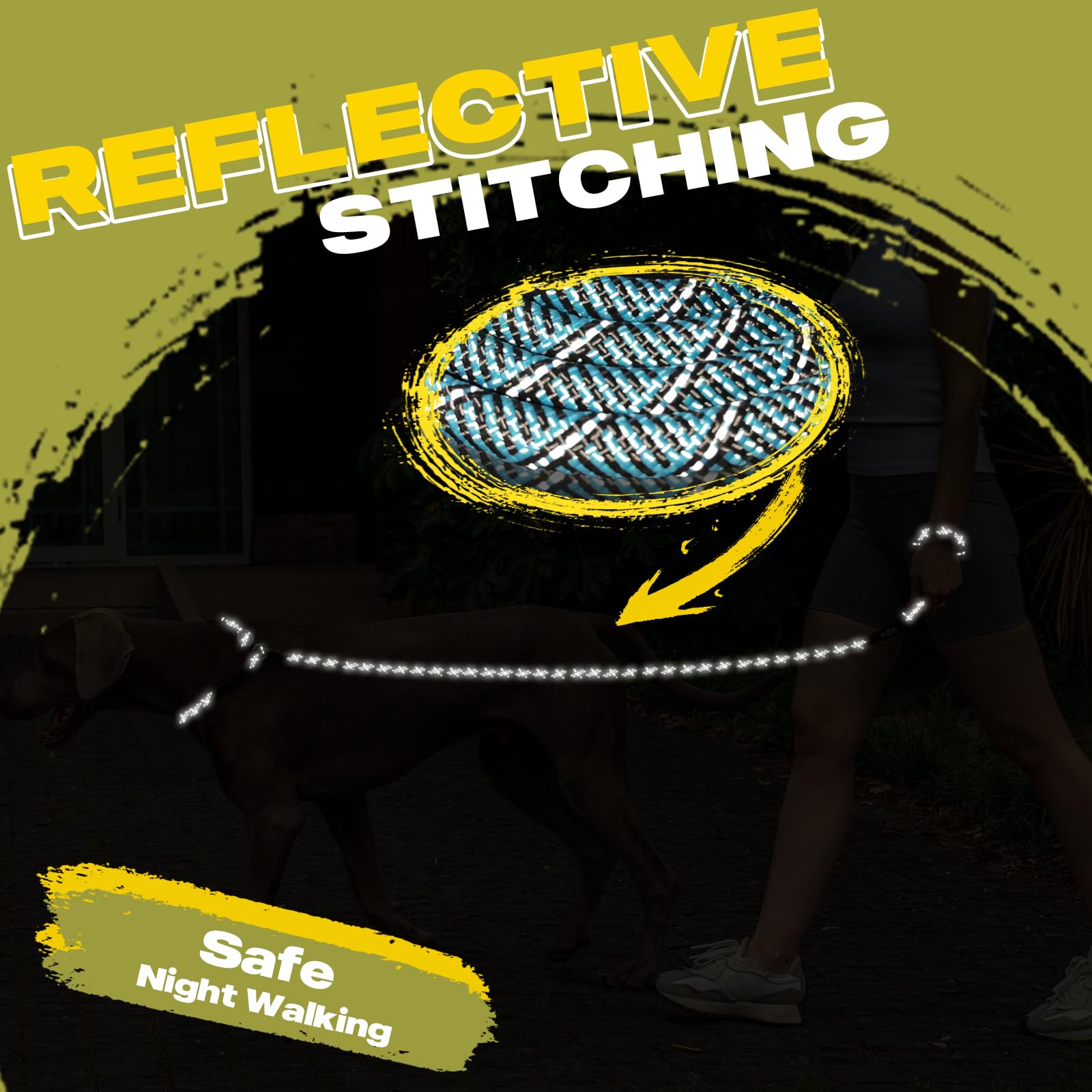 【Reflective for Night Safety】- The reflective straps on the entire rope leash ensures great visibility and security during night walk or jogging