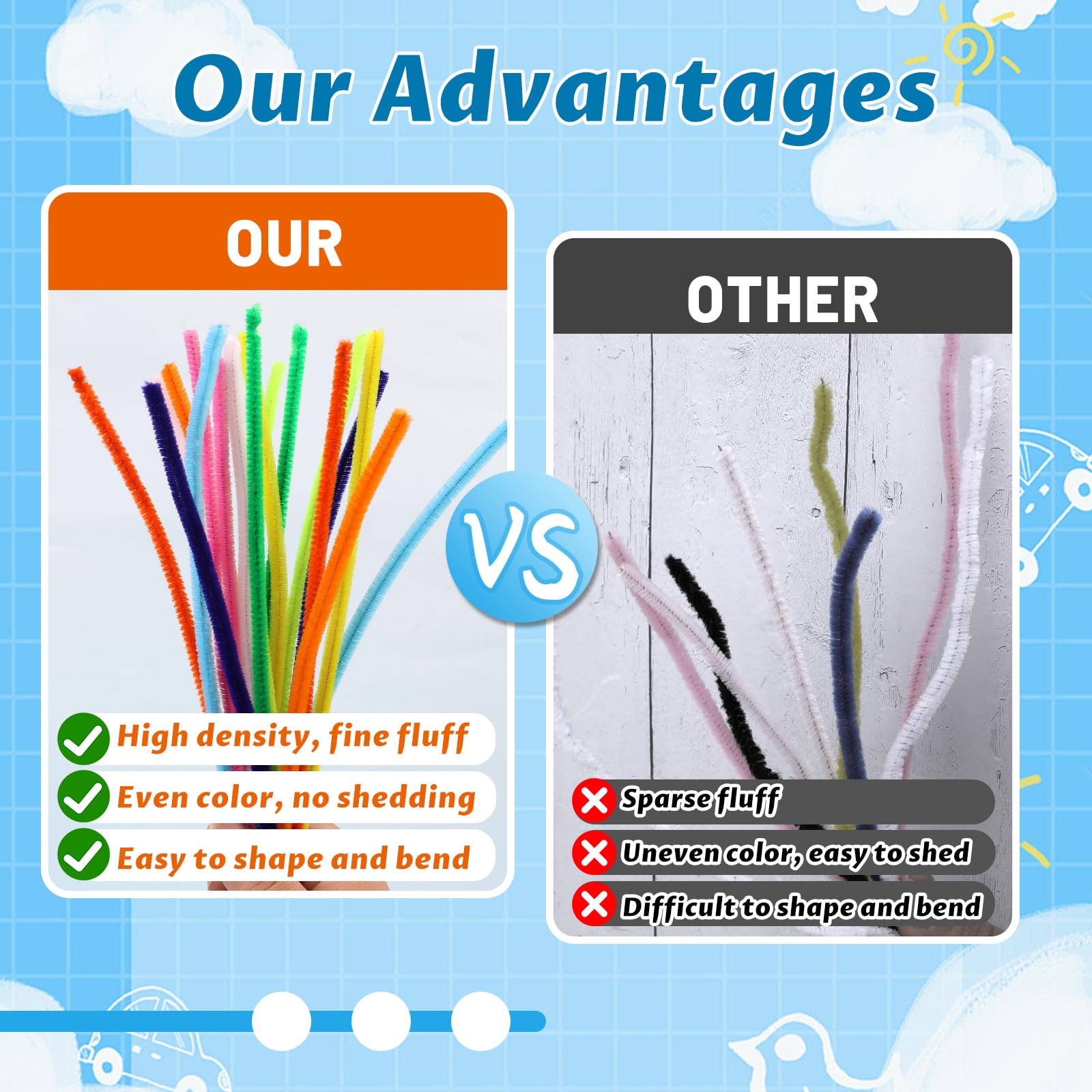Easy to Use: These pipe cleaners can be cut to the length you need, such as when making small crafts, they can be cut to the appropriate length before making them. The soft material makes it easier to twist, such as when making flower petals, it can be easily twisted and easy to make