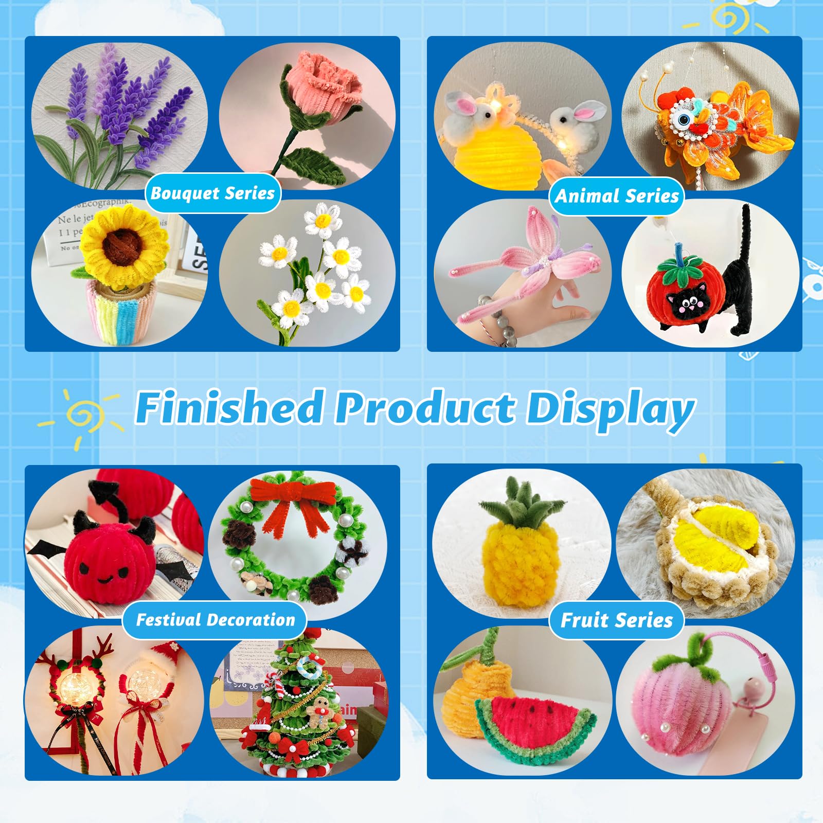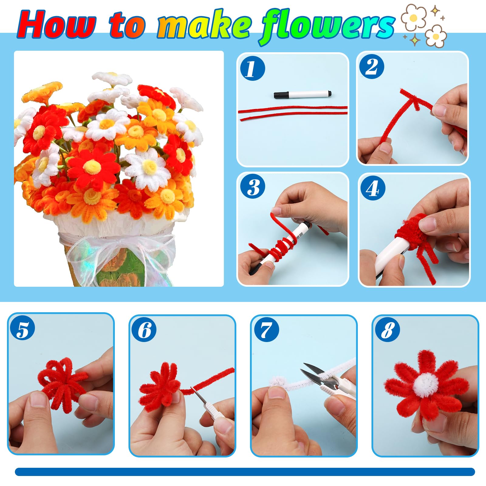 Pipe Cleaners Craft: Whether it is the weekend or craft time, you can use this pipe cleaner with various colors of pipe cleaner to make cute crafts with your family. The sufficient colors can give full play to your imagination and match them to make unique pipe cleaners craft, which can improve everyone's hands-on ability, enhance communication with your family, and create more fun