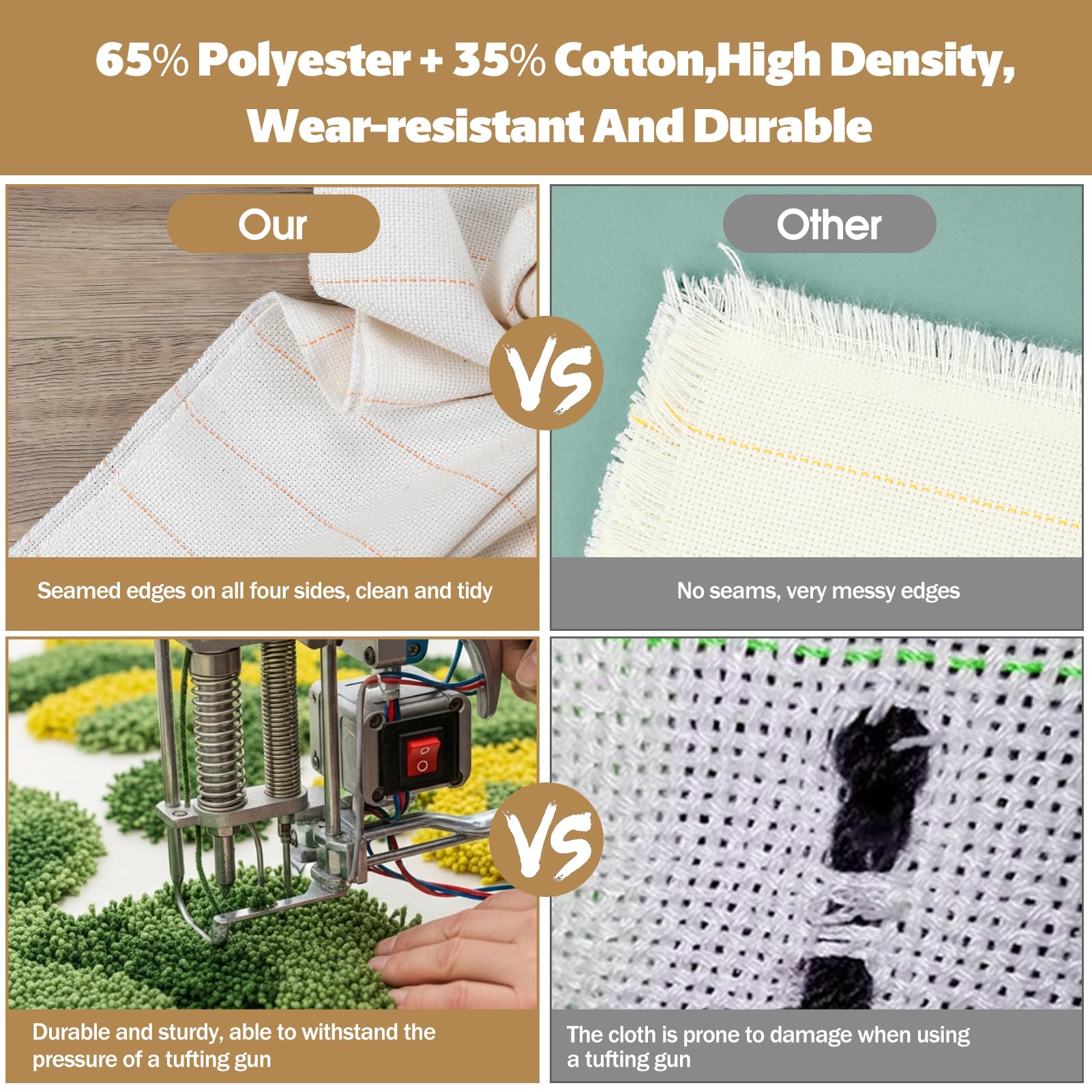 SUITABLE FOR TUFTING GUN: The tufting fabric cloth is composed of 65 percent cotton and 35 percent polyester material, which is soft and sturdy, and can withstand the pressure of tufting guns. Using this monks cloth to make handicrafts is very endruing for use