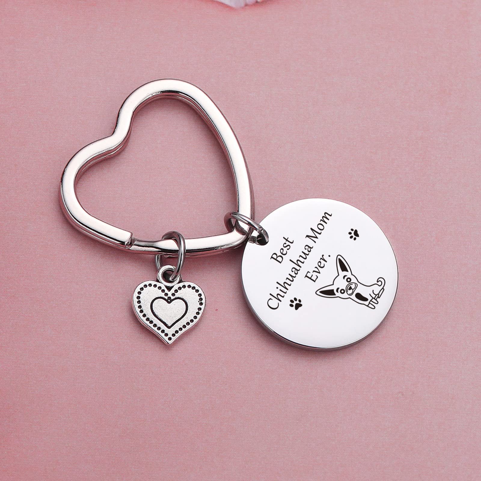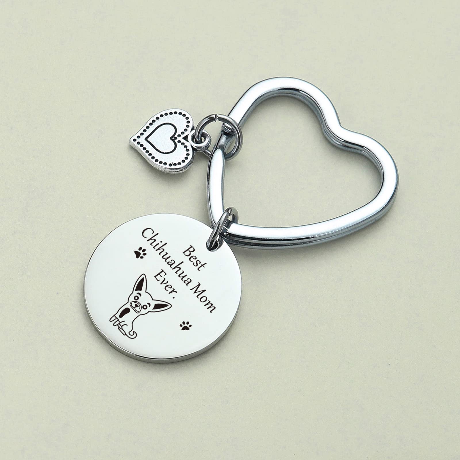 Description JIUSHUN Chihuahua Mom Keychain Made out of 316L stainless steel, harmony for health and safe for sensitive skin.